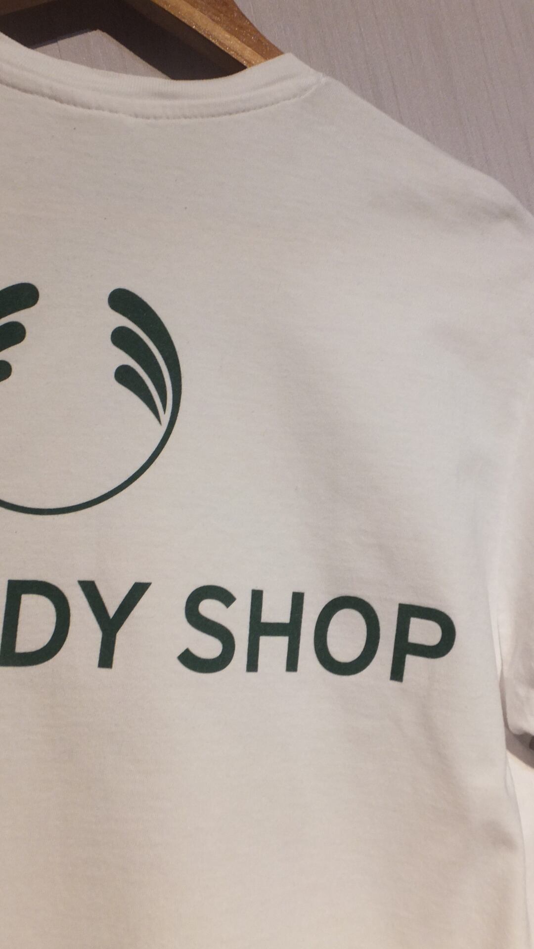 イギリスに本社を構える化粧品会社、ザ・ボディショップ THE BODY SHOP の両面ロゴ入りTシャツです。