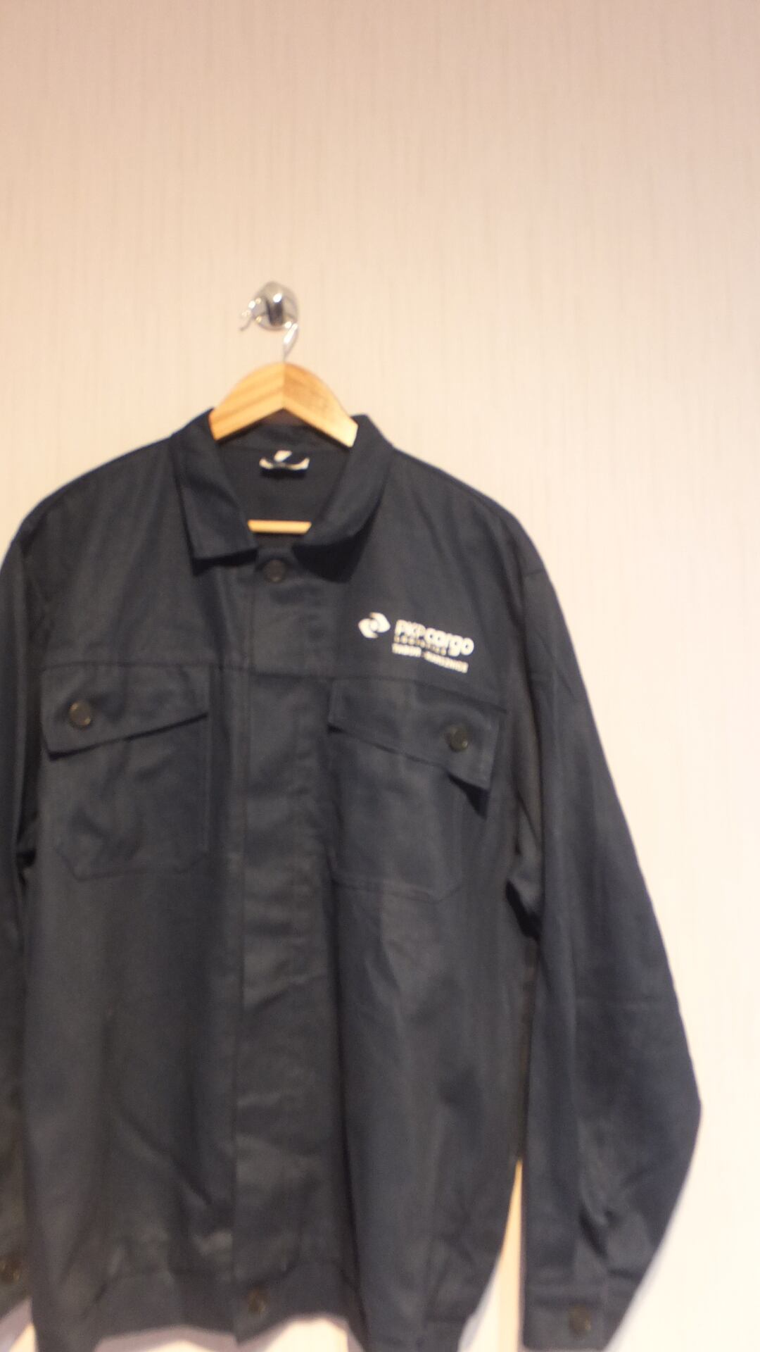 ポーランド国鉄(PKP Polskie Koleje Państwowe)の貨物部門ロゴ入り作業着です。貨物鉄道らしい雰囲気のある、肉厚生地の作業着です。おそらくは関係者用の作業着ではないでしょうか。