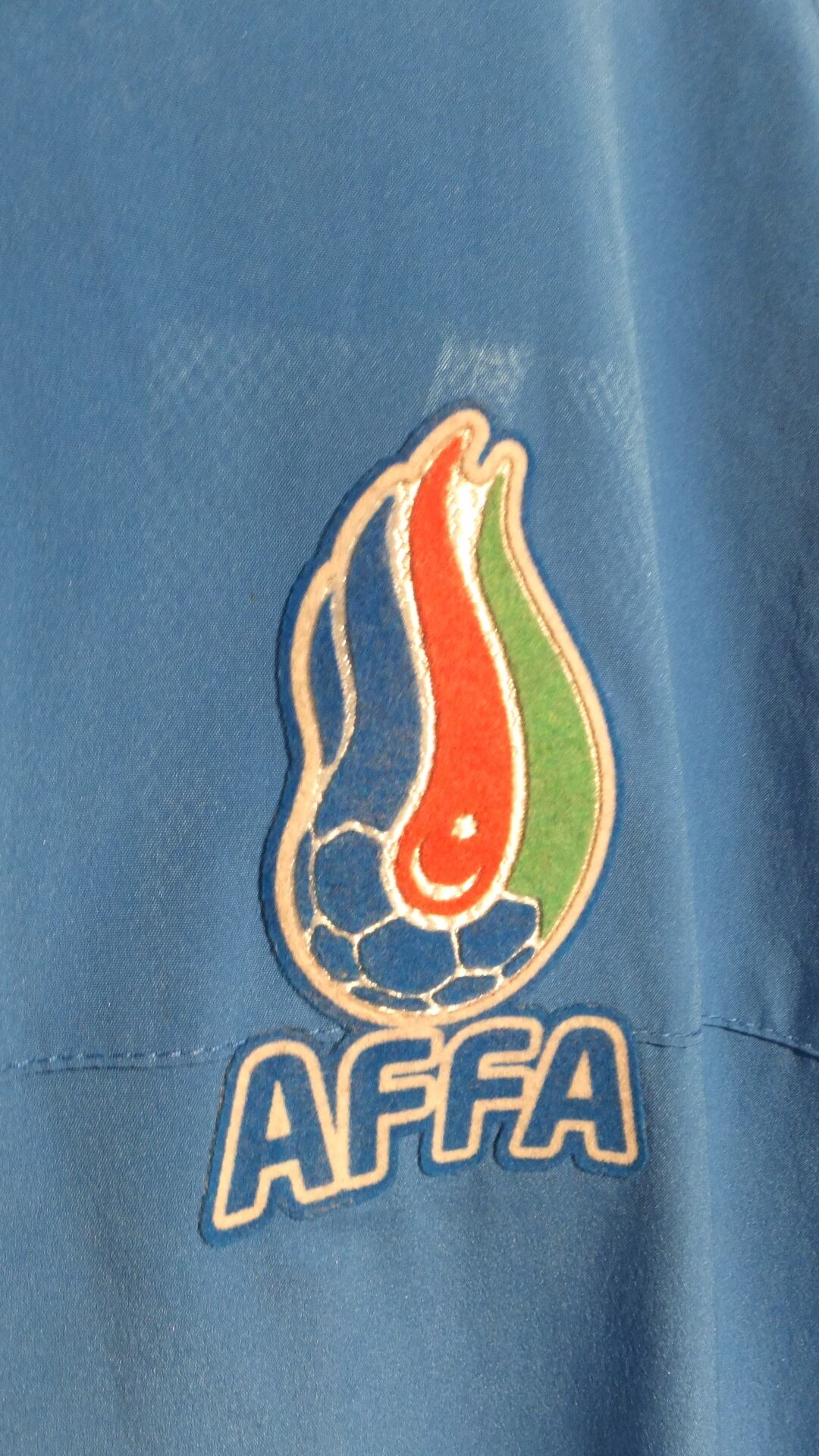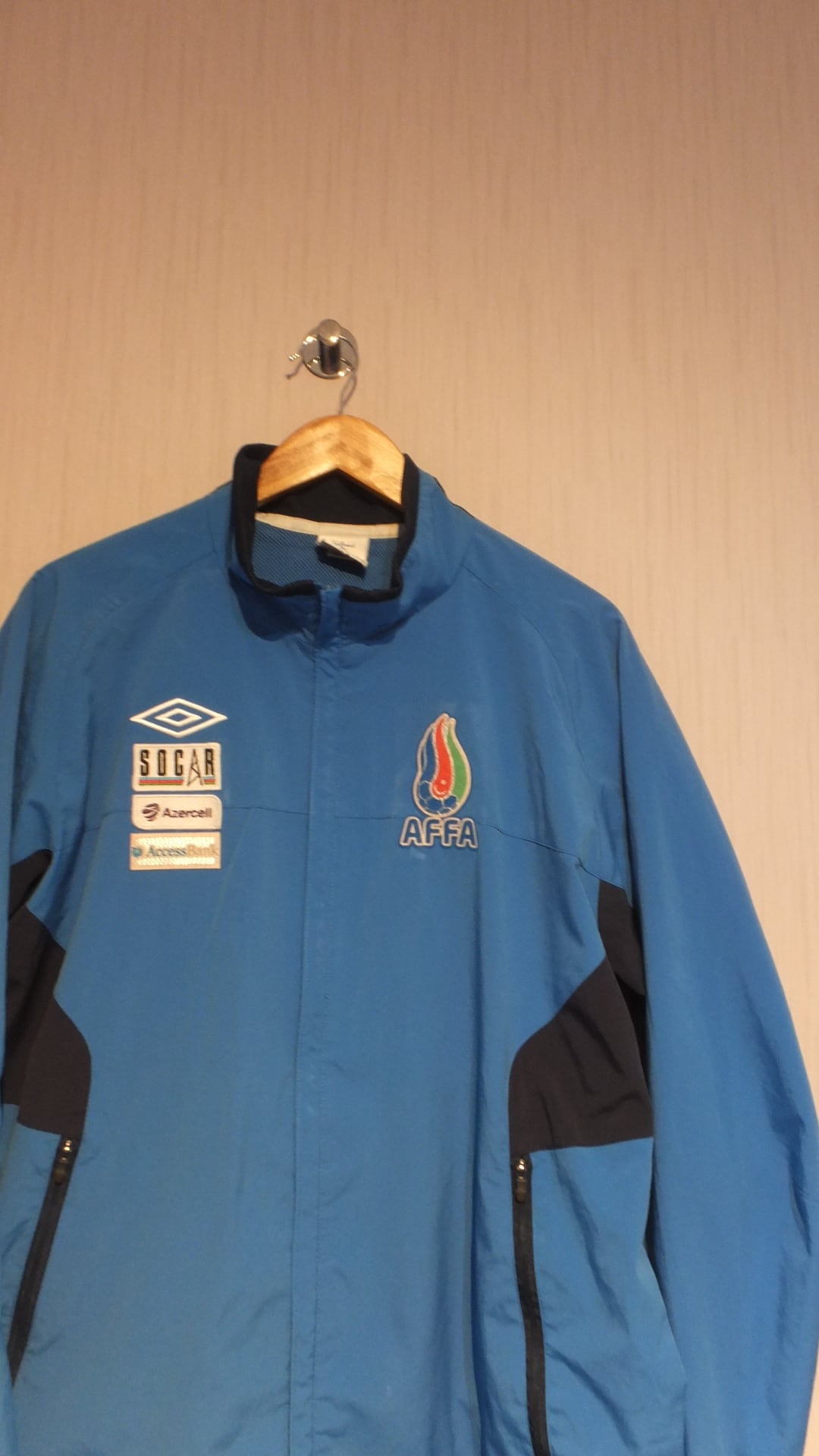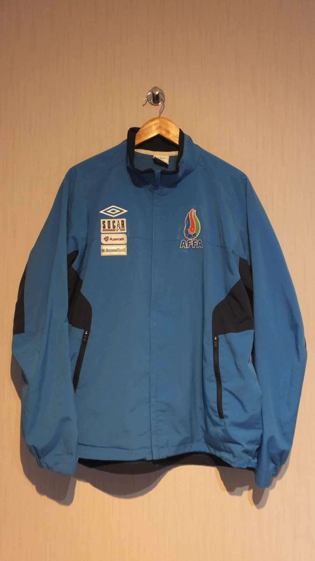 おそらくアゼルバイジャンサッカー代表関係者用と見られる、アゼルバイジャンサッカー連盟協会 Azərbaycan Futbol Federasiyaları Assosiasiyas(AFFA)のロゴ、および国名プリント入りのトレーニングウェアです。ブランドはUMBRO アンブロ。
