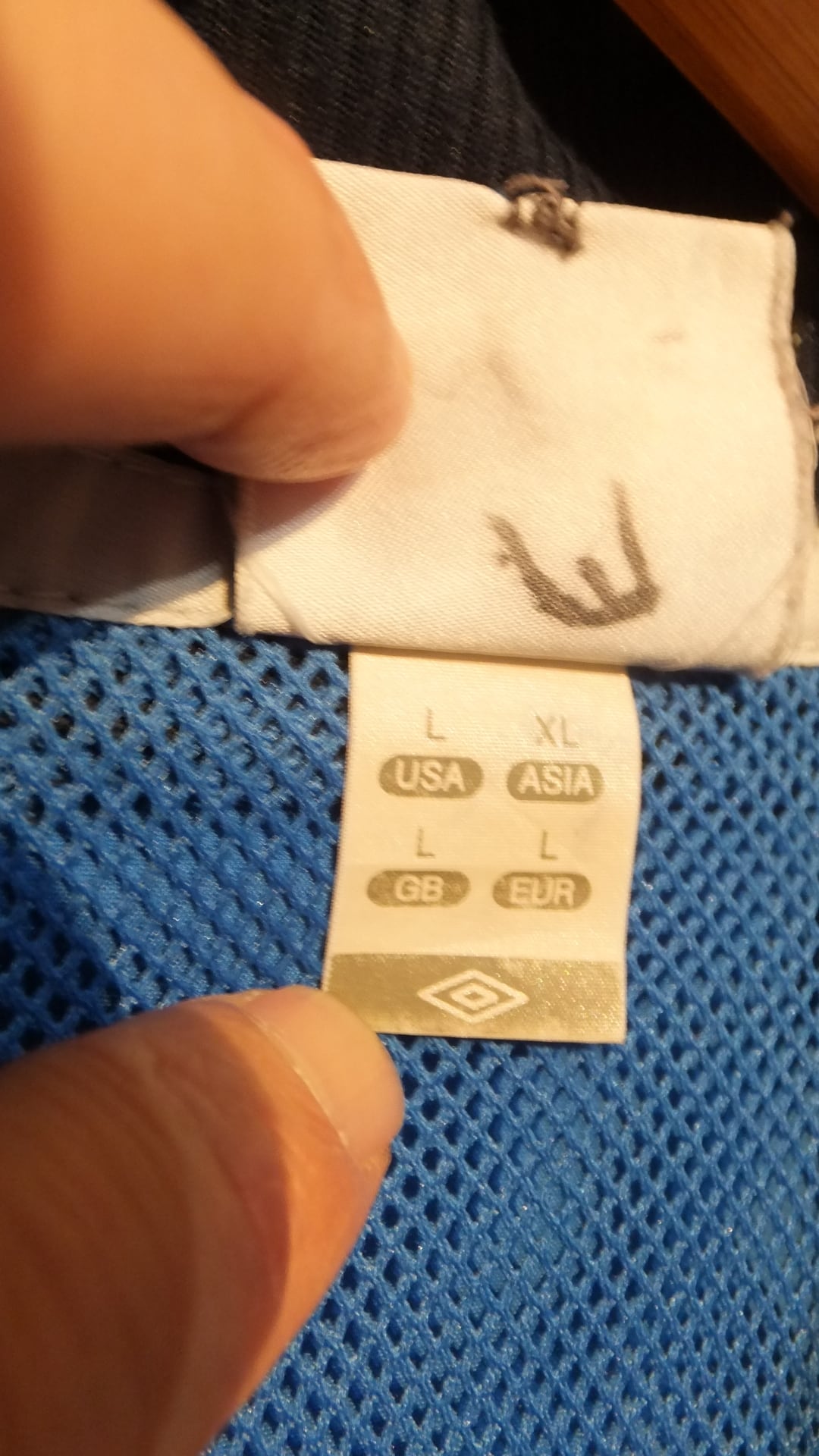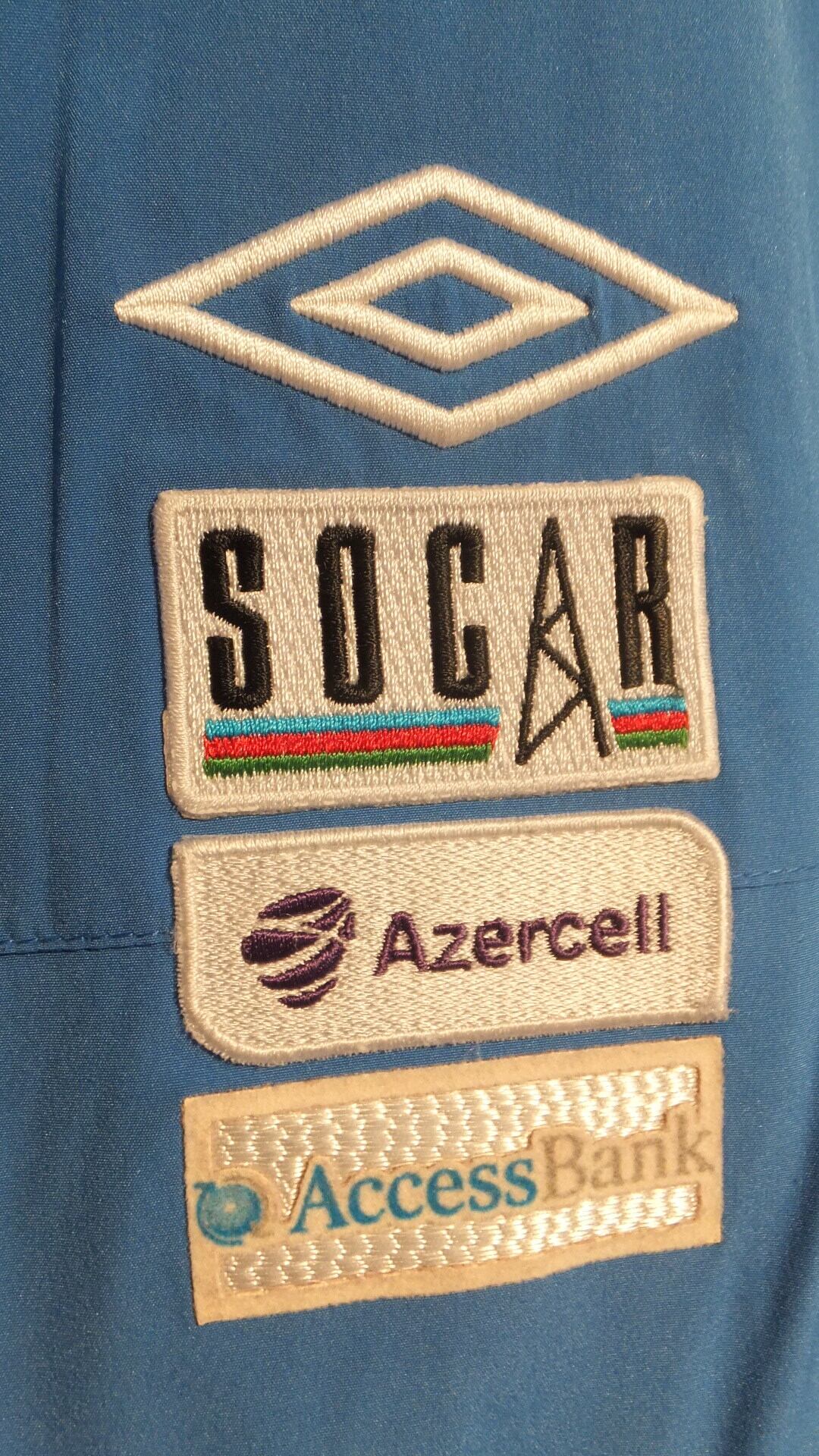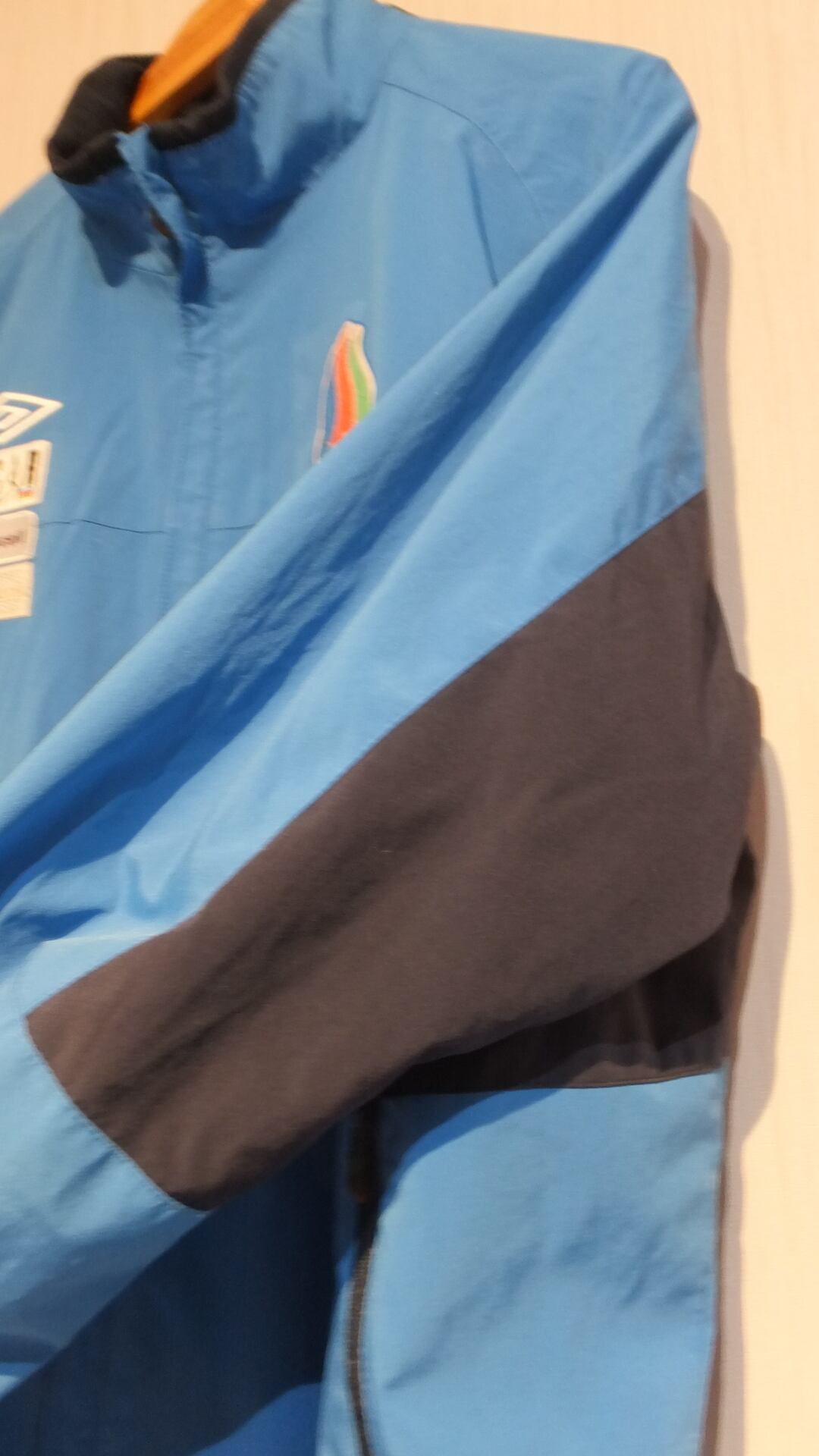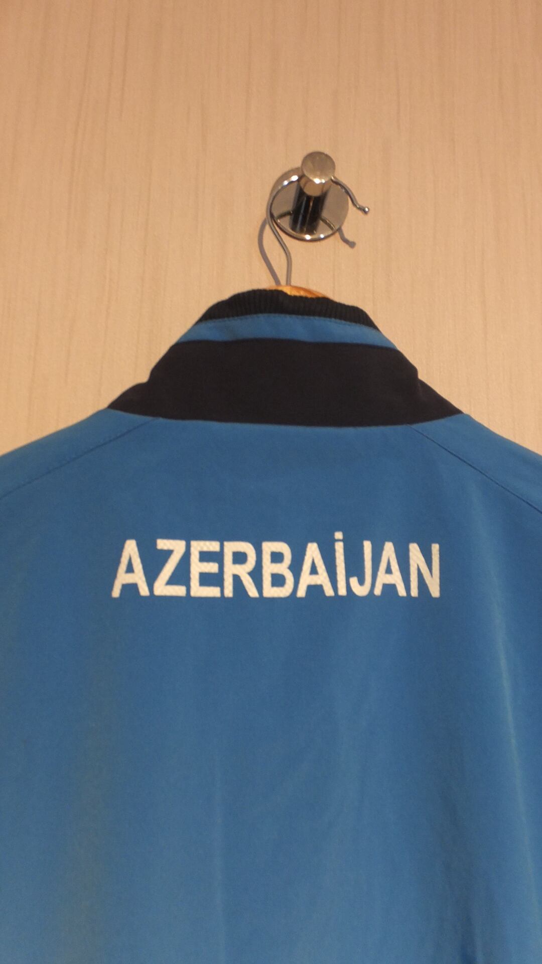 おそらくアゼルバイジャンサッカー代表関係者用と見られる、アゼルバイジャンサッカー連盟協会 Azərbaycan Futbol Federasiyaları Assosiasiyas(AFFA)のロゴ、および国名プリント入りのトレーニングウェアです。ブランドはUMBRO アンブロ。