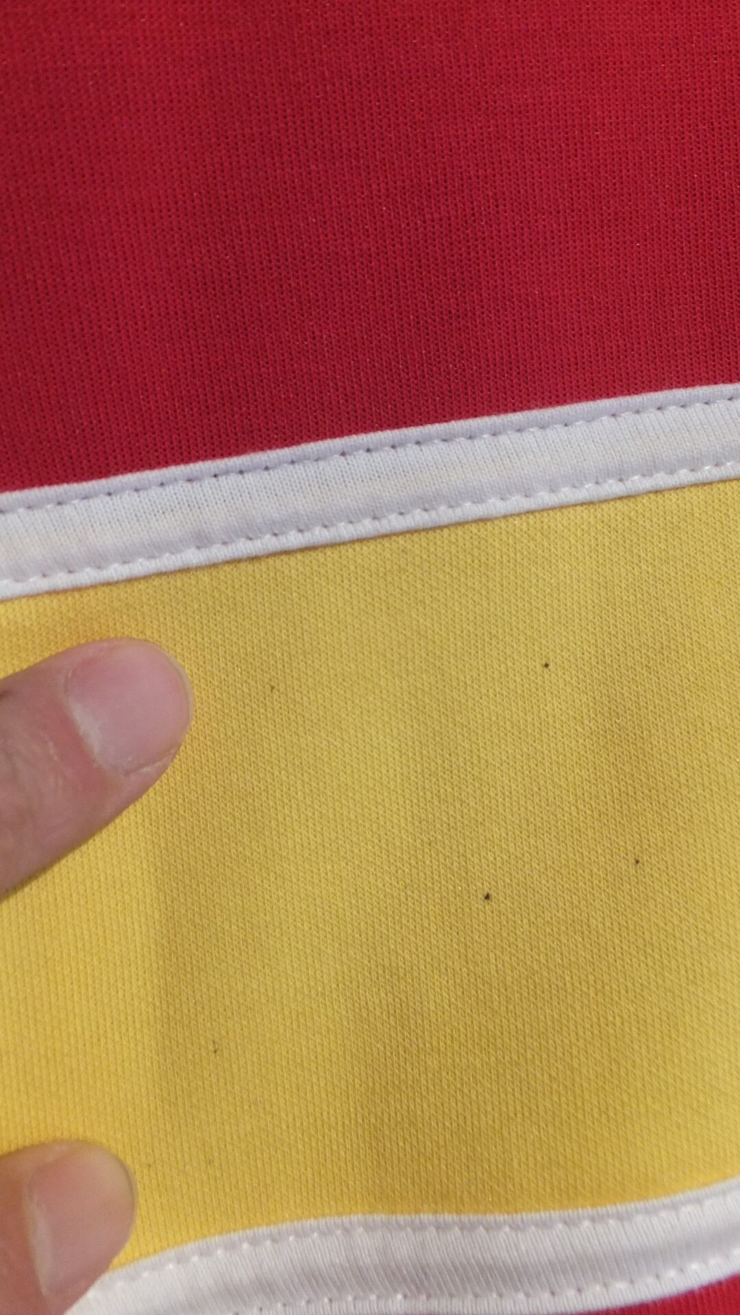 写真5および6枚目、指先の付近は直径1mm程度までの薄い点を示しております。強力な漂白剤等により処理は生地保護の観点から未実施です。