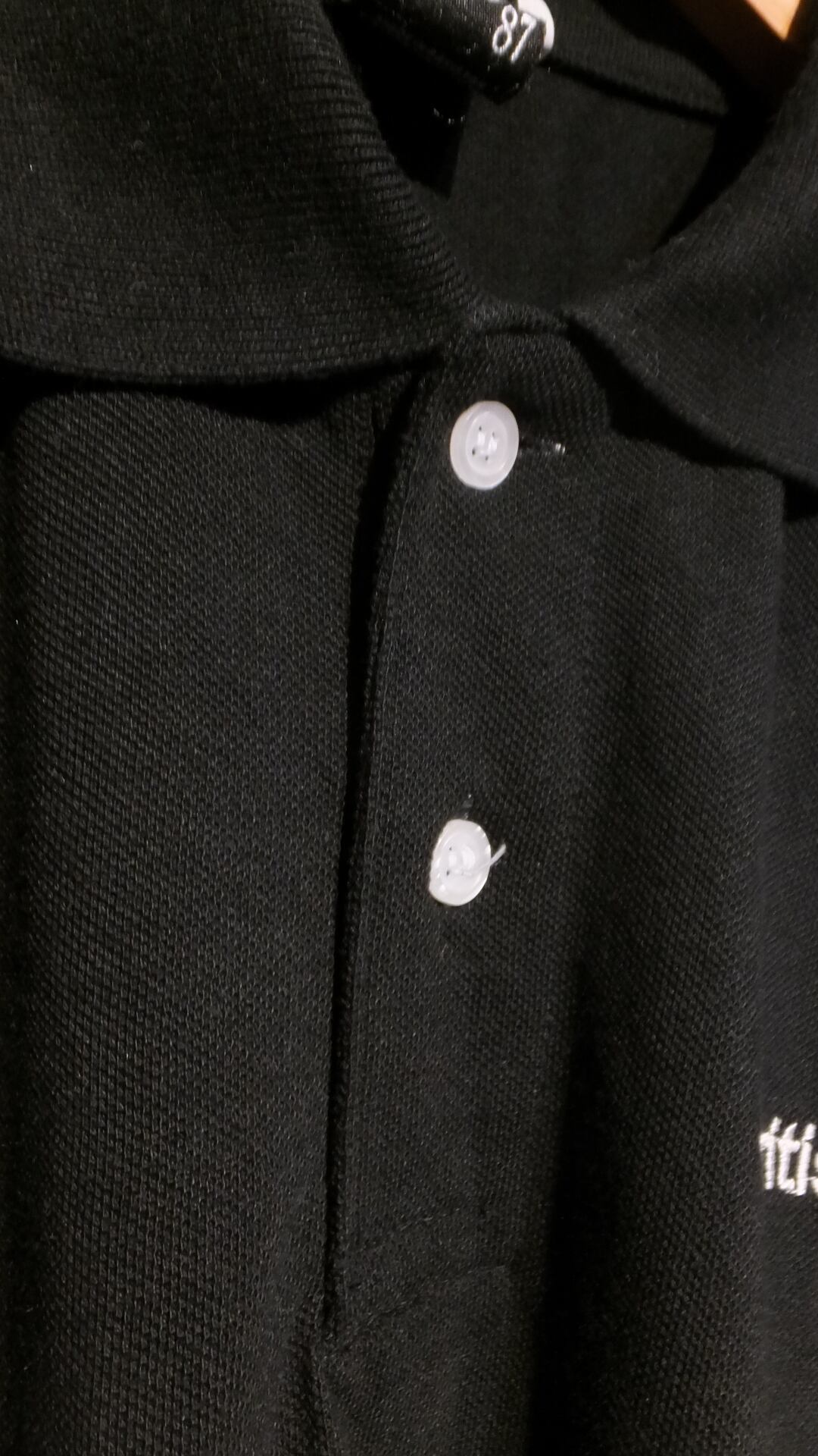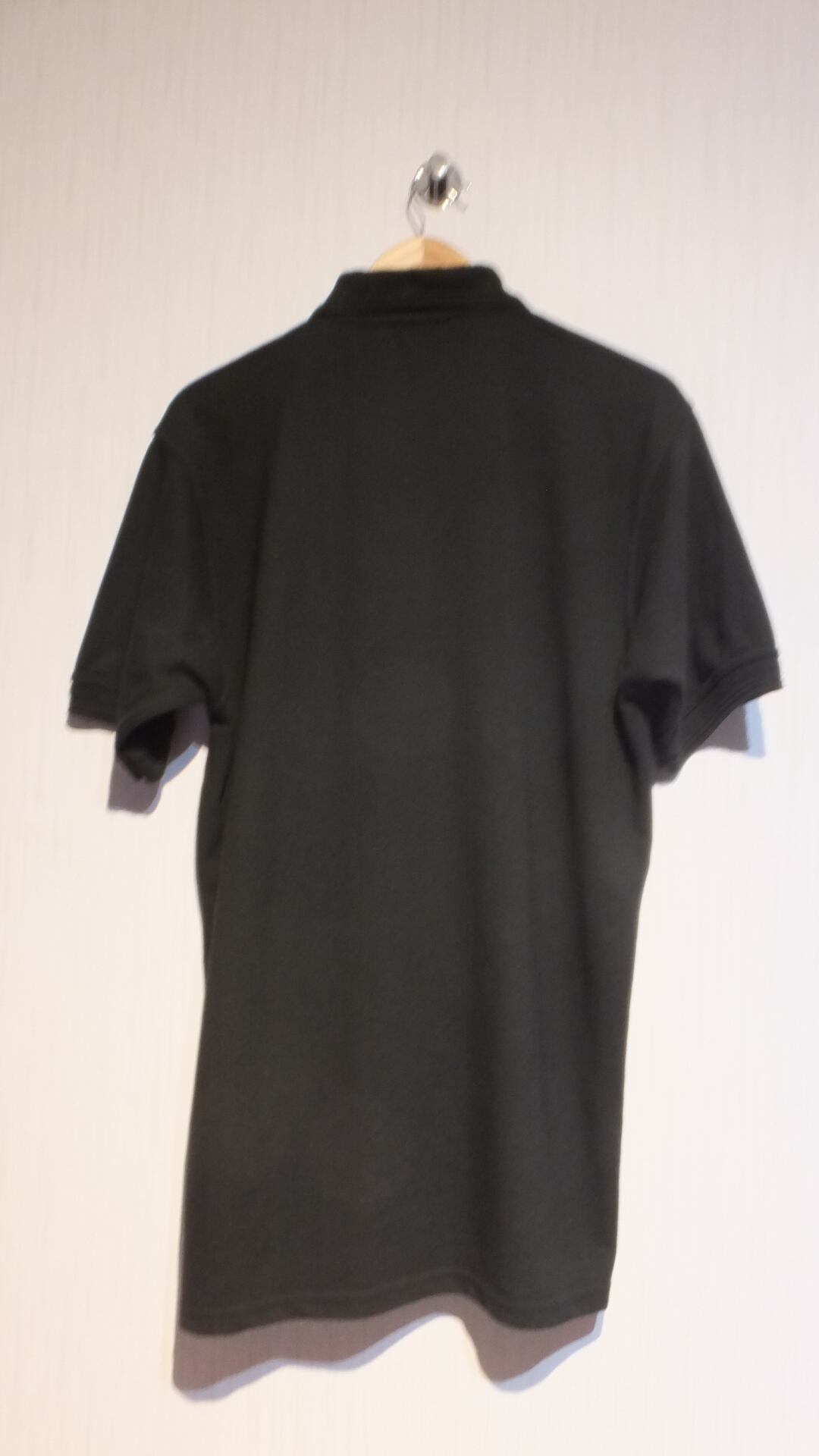 寸法: 着丈: 80 cm(ユニクロのサイズ表 ドライカノコポロシャツ 男女兼用サイズMサイズとの比較値 + 4.5 cm)、身幅: 56 cm(同比較値 - 4.5 cm)、肩幅: 51 cm (同比較値 + 2 cm)、袖丈: 26 cm (※ 比較値なしのため参考値)