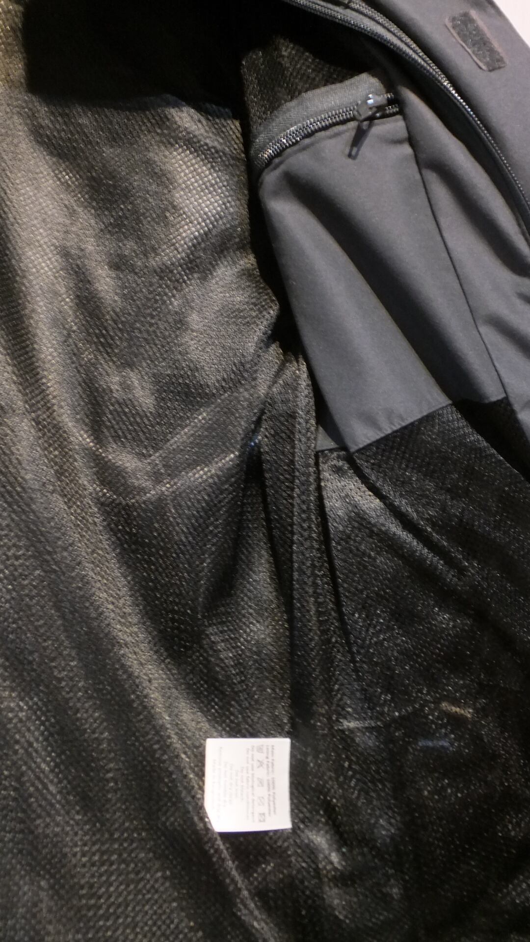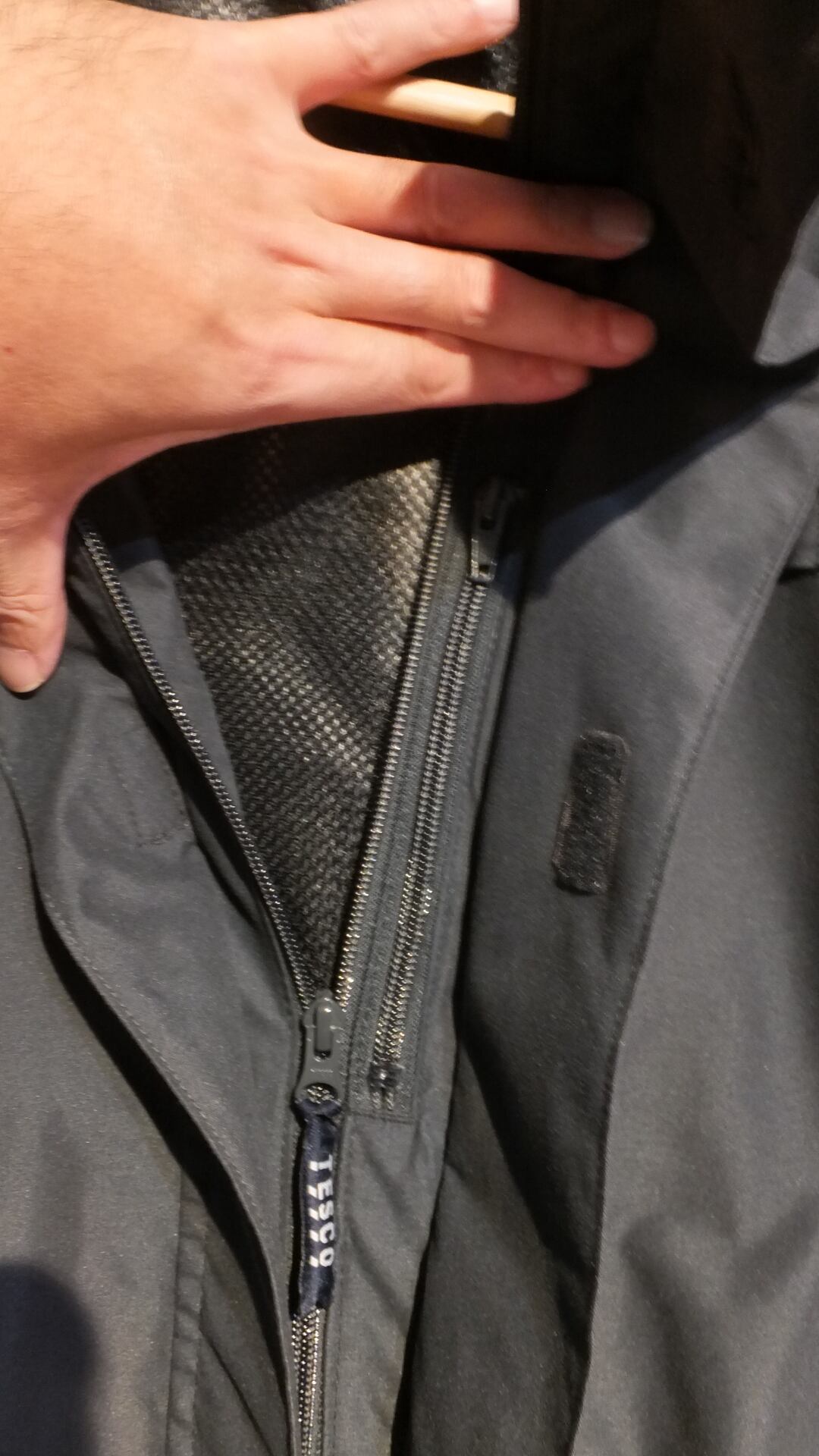 フード部分は首回り部分に収納、またはジッパーにより着脱が可能です(写真12、13枚目はフードを首回りへ収納時、同14および15枚目はフードなし状態を撮影)。