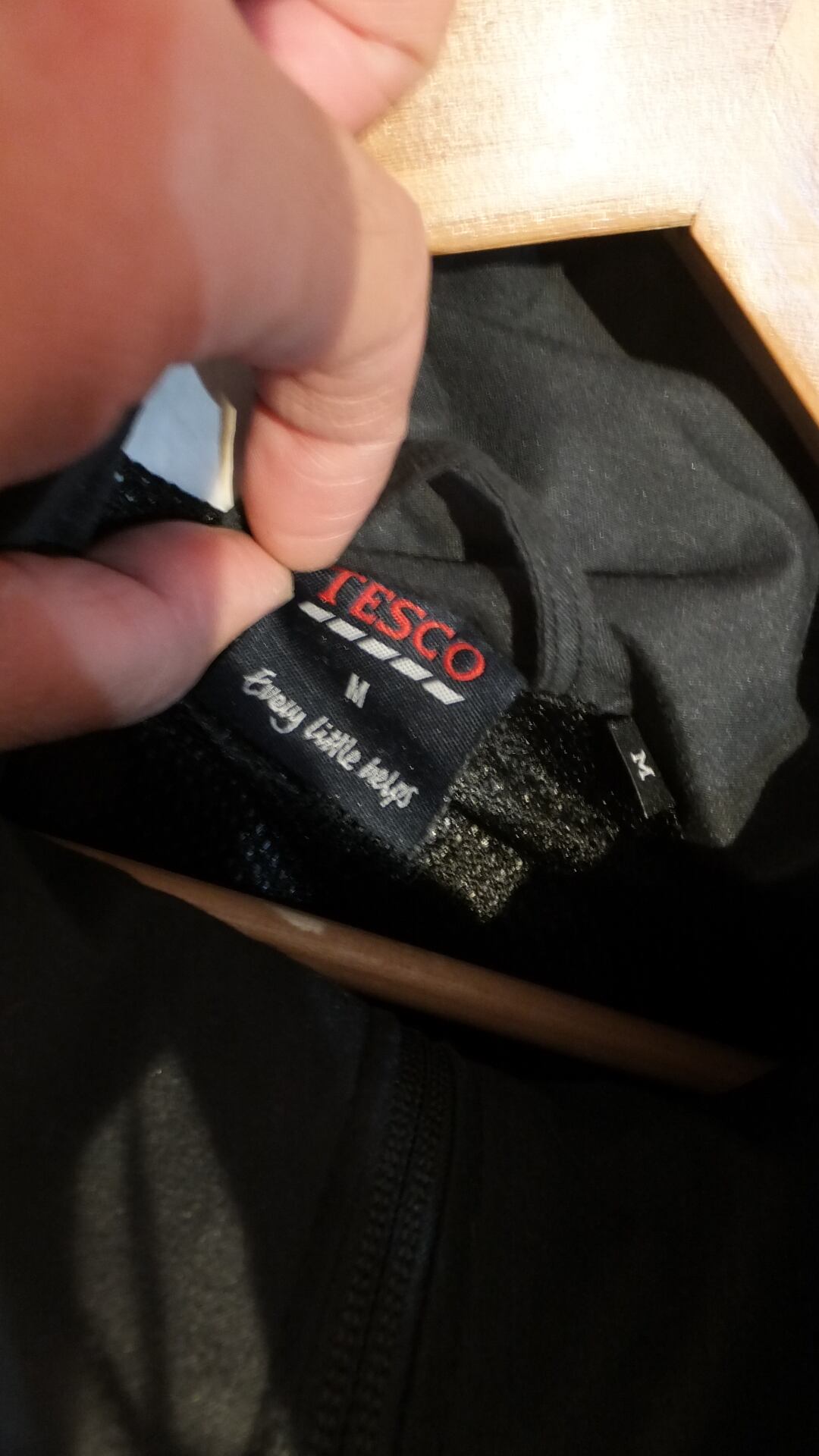 日本からは結構前に撤退していますが、世界的にみるとイオンあたりよりも全然規模が大きい英国発祥の世界的スーパーマーケットチェーン、テスコ TESCO のロゴプリント入りジャケットです。