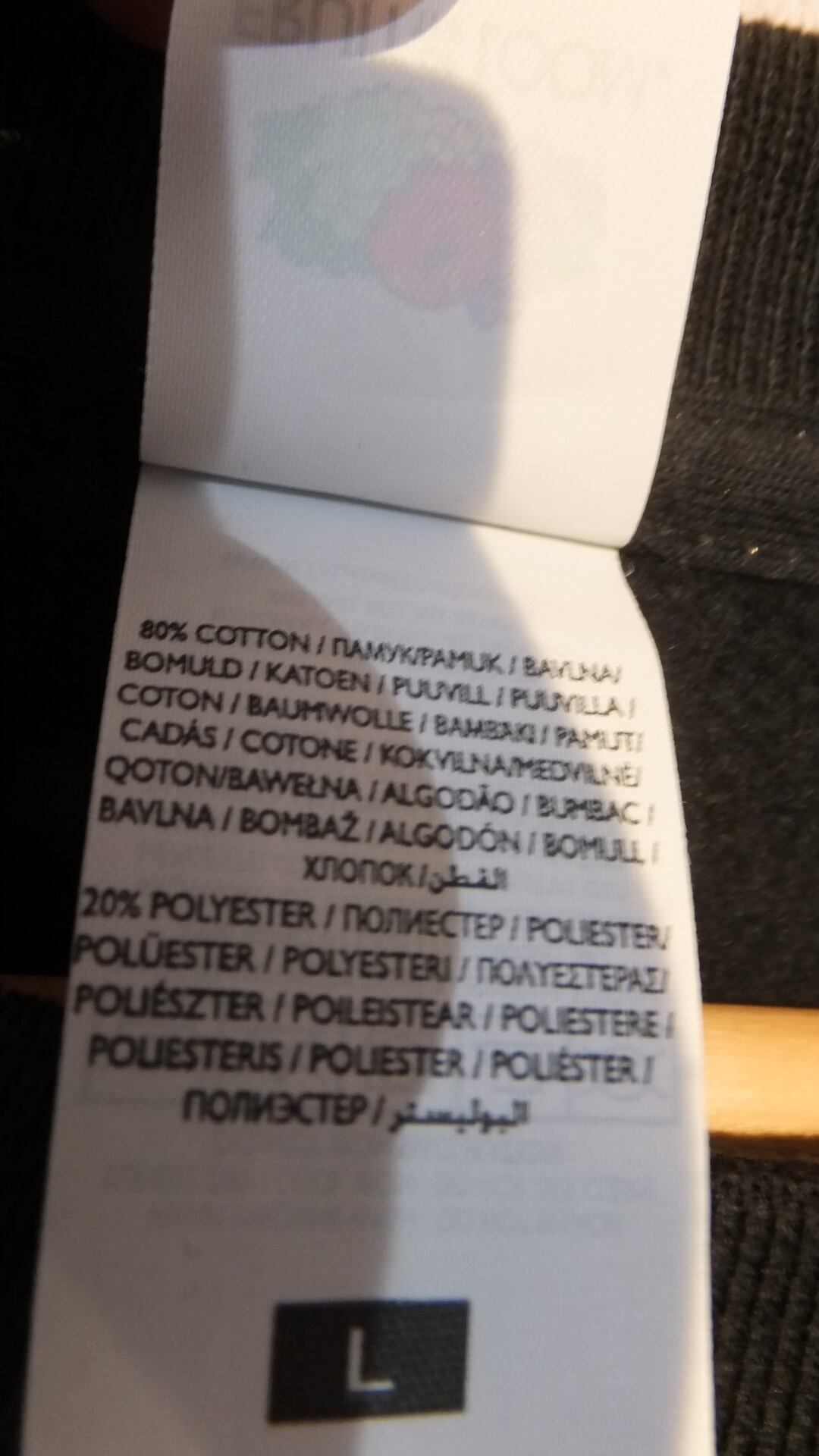 サイズ表記はLで、日本基準では概ねLサイズ以上に相当します。サイズの参考値として、下記寸法欄にユニクロのスウェットシャツ 長袖 Lサイズ(男女兼用サイズ)との比較値を記載しておりますのでご覧ください。