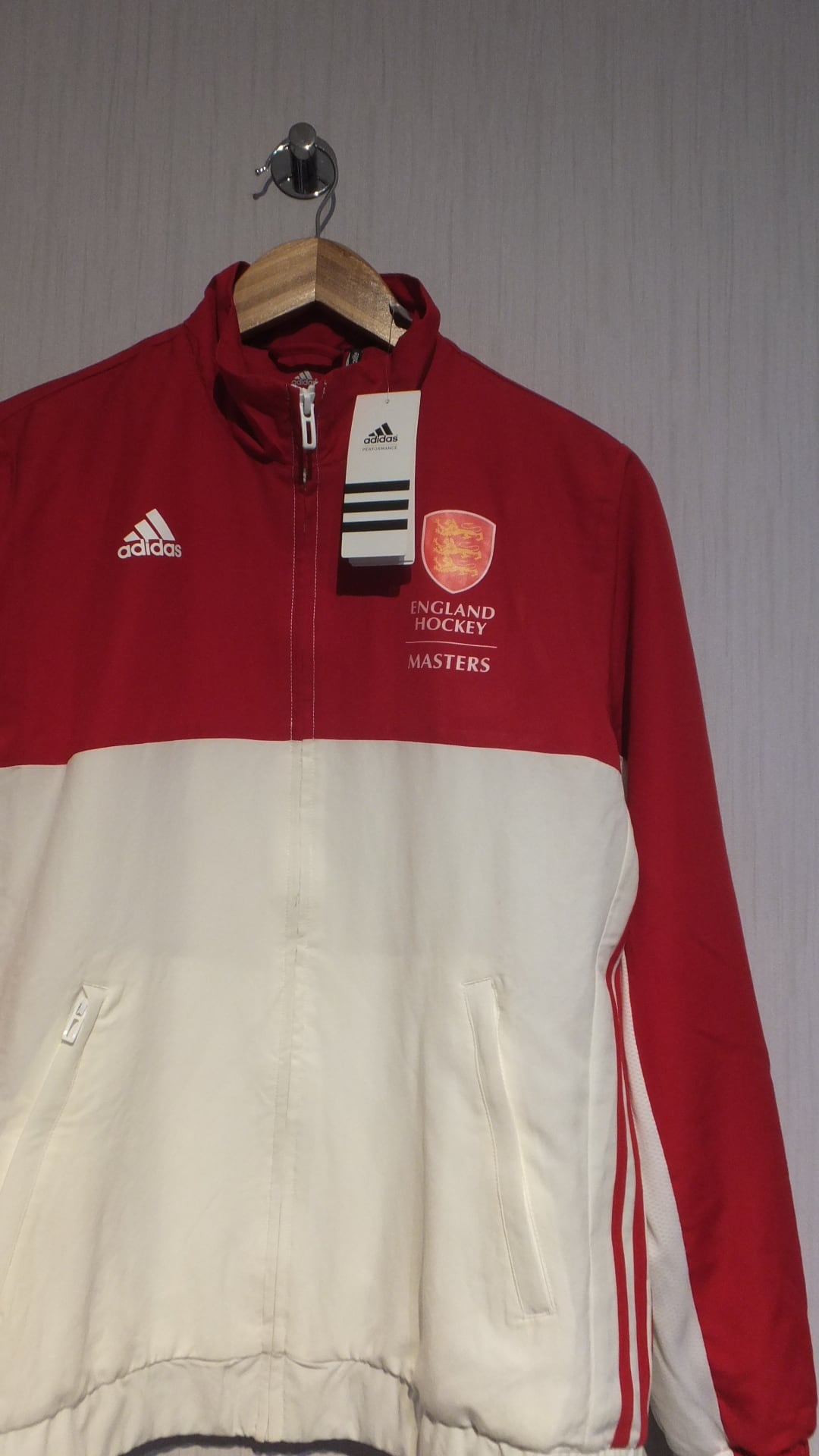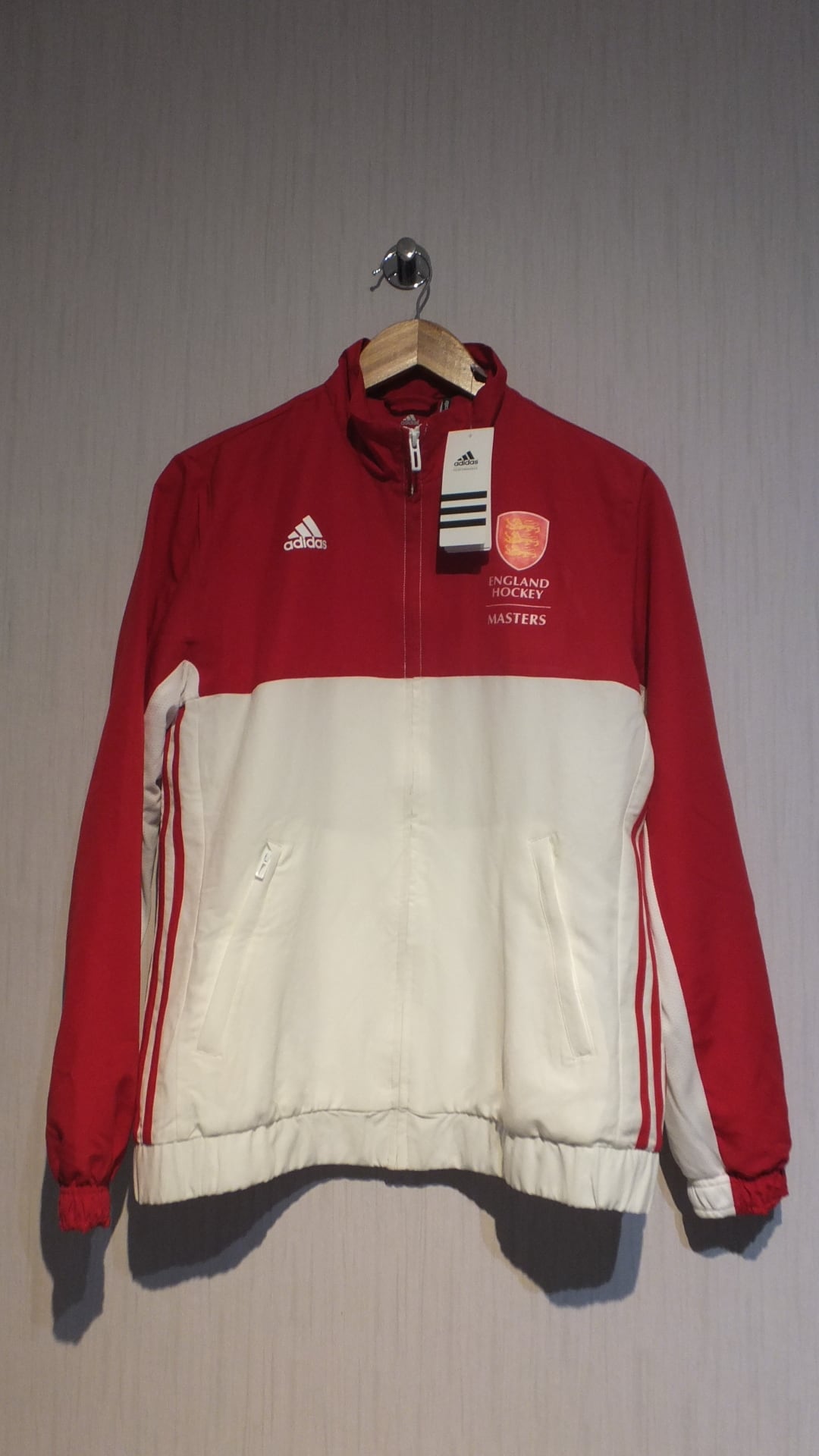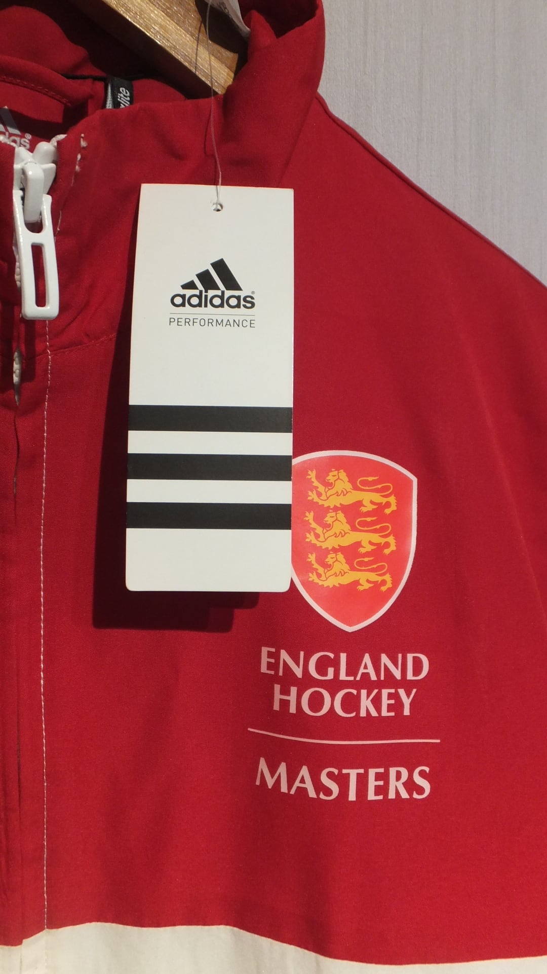 タグ付き未使用新品 adidas アディダス イングランドホッケー マスターズ部門 England Hockey Masters 組織ロゴプリント入り長袖スウェット レッド/ホワイト 日本基準概ねS相当(男女兼用サイズ)サイズ表示M スポーツ古着 | dankeman