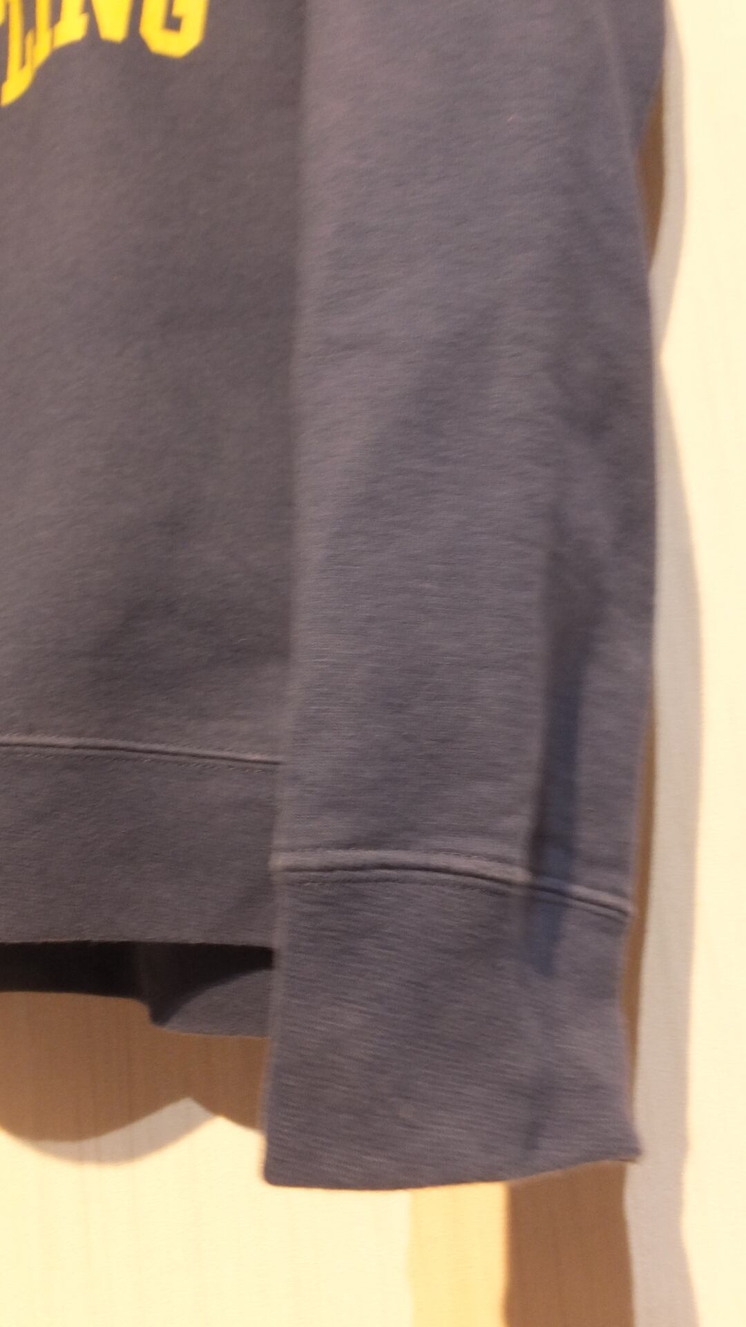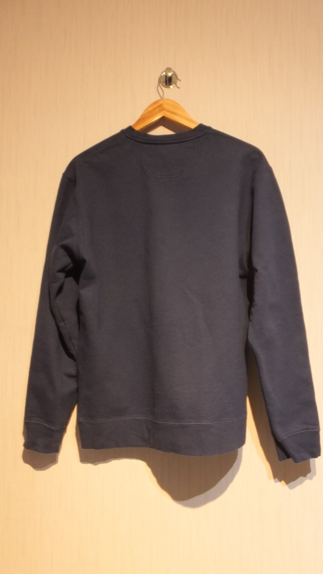 サイズ表記はLで、日本基準では概ねM(男女兼用サイズ)に相当します。サイズの参考値として、下記寸法欄にユニクロのスウェットシャツ 長袖 Mサイズとの比較値を記載しておりますのでご覧ください。