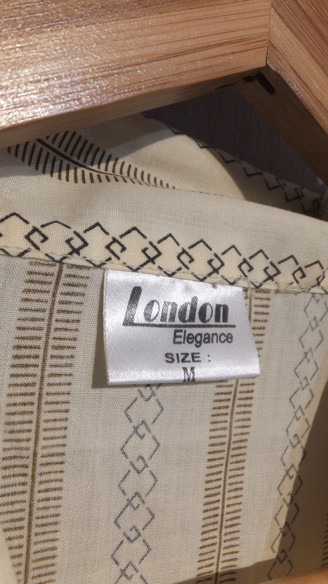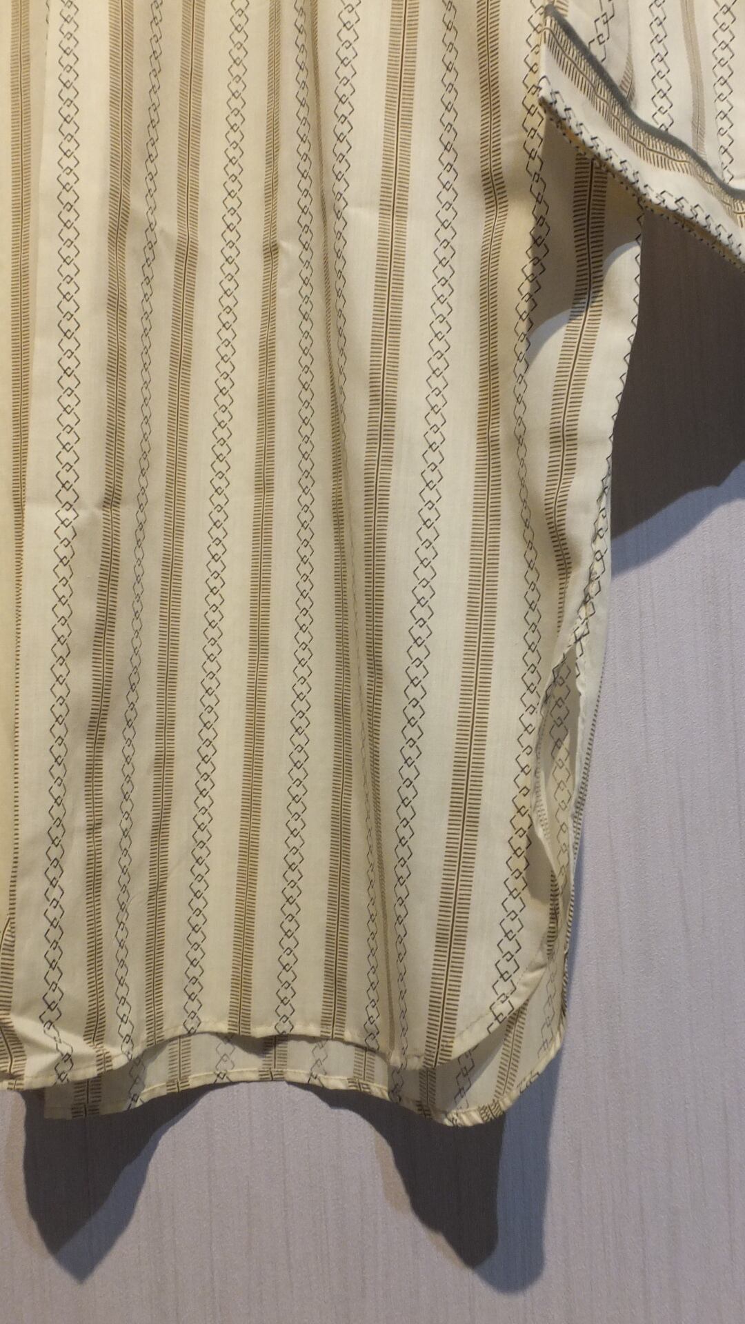 寸法 着丈: 105 cm(ユニクロのフランネルシャツ長袖 男女兼用 Mサイズとの比較値 + 29 cm)、身幅: 60 cm(同比較値 + 2 cm)、肩幅: 47.5 cm (同比較値 - 2 cm)、袖丈: 63 cm(※ 比較値なしのため参考値)