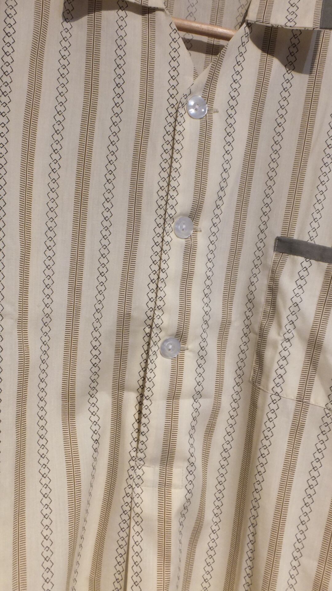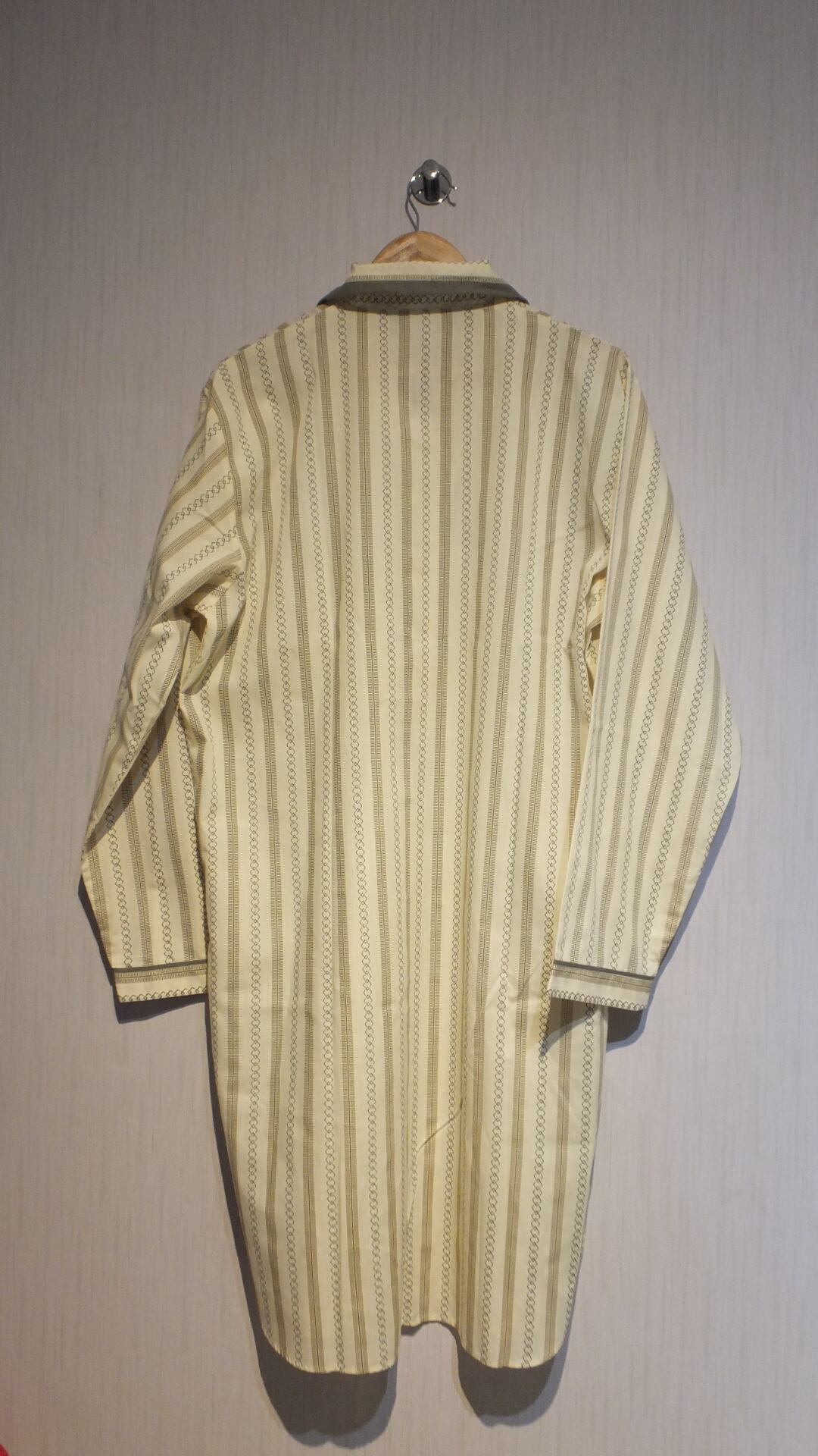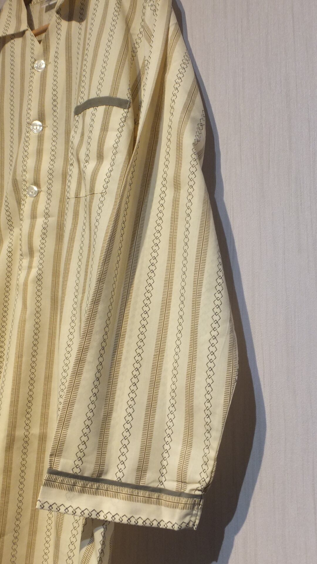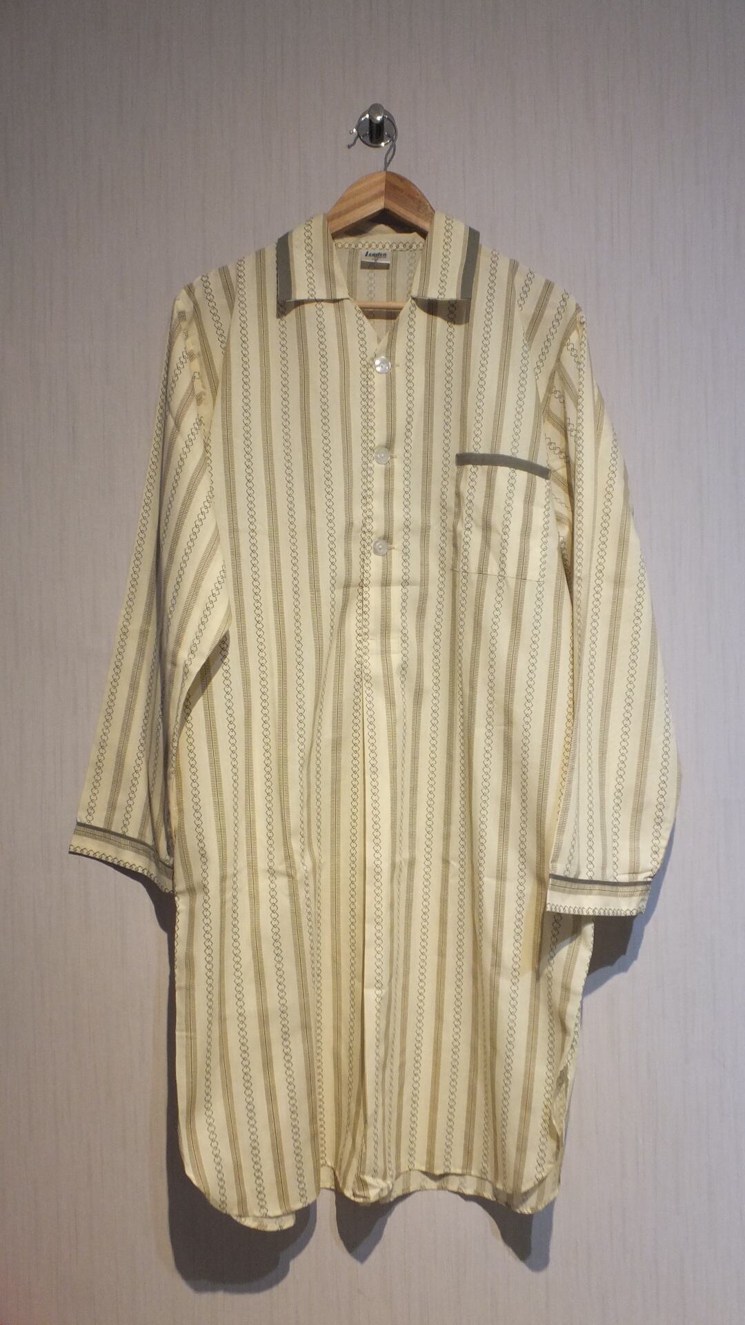 おそらくドイツで製造されたとみられる、ロング丈のパジャマシャツです。製造年代は不明ですが、全体の雰囲気から1990年代あたりまでの製造ではないかと推察。