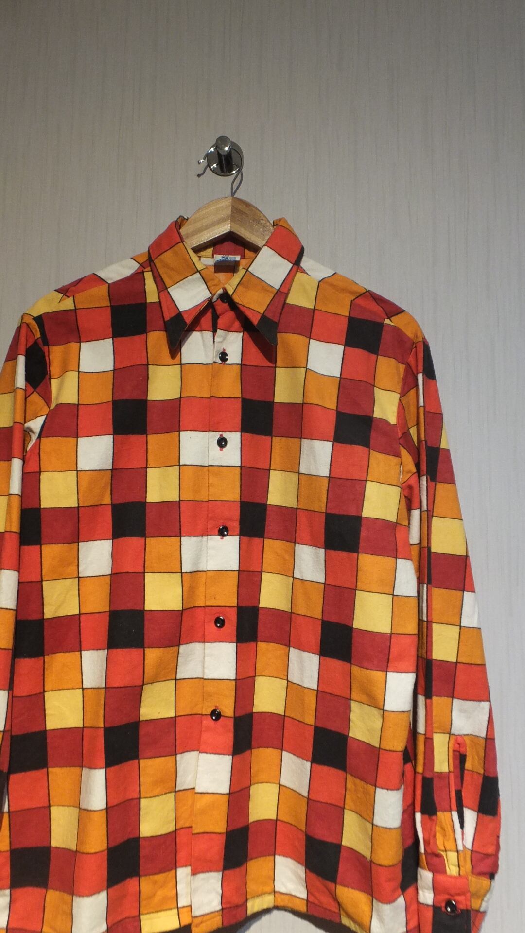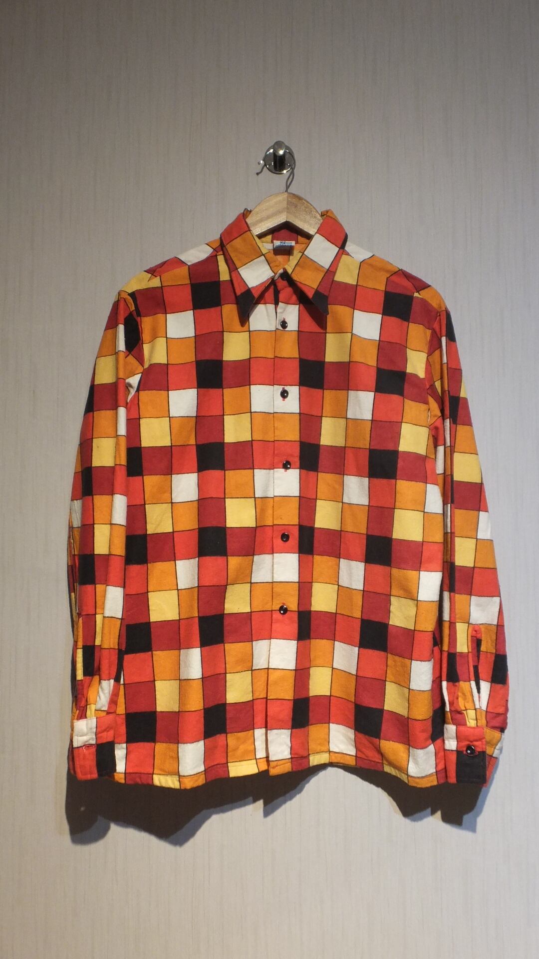 おそらく1980年代前半あたりのワークシャツ ポーランド製濃厚(製造業者はポーランドのPolanex)赤/黄/オレンジ系チェック サイズ表示III-IV(当時規格で身長165〜176cmくらいの人向け)日本サイズ概ねL相当(身幅、高幅基準で。着丈少し短め)相当 作業着 ユーロシャツ | dankeman