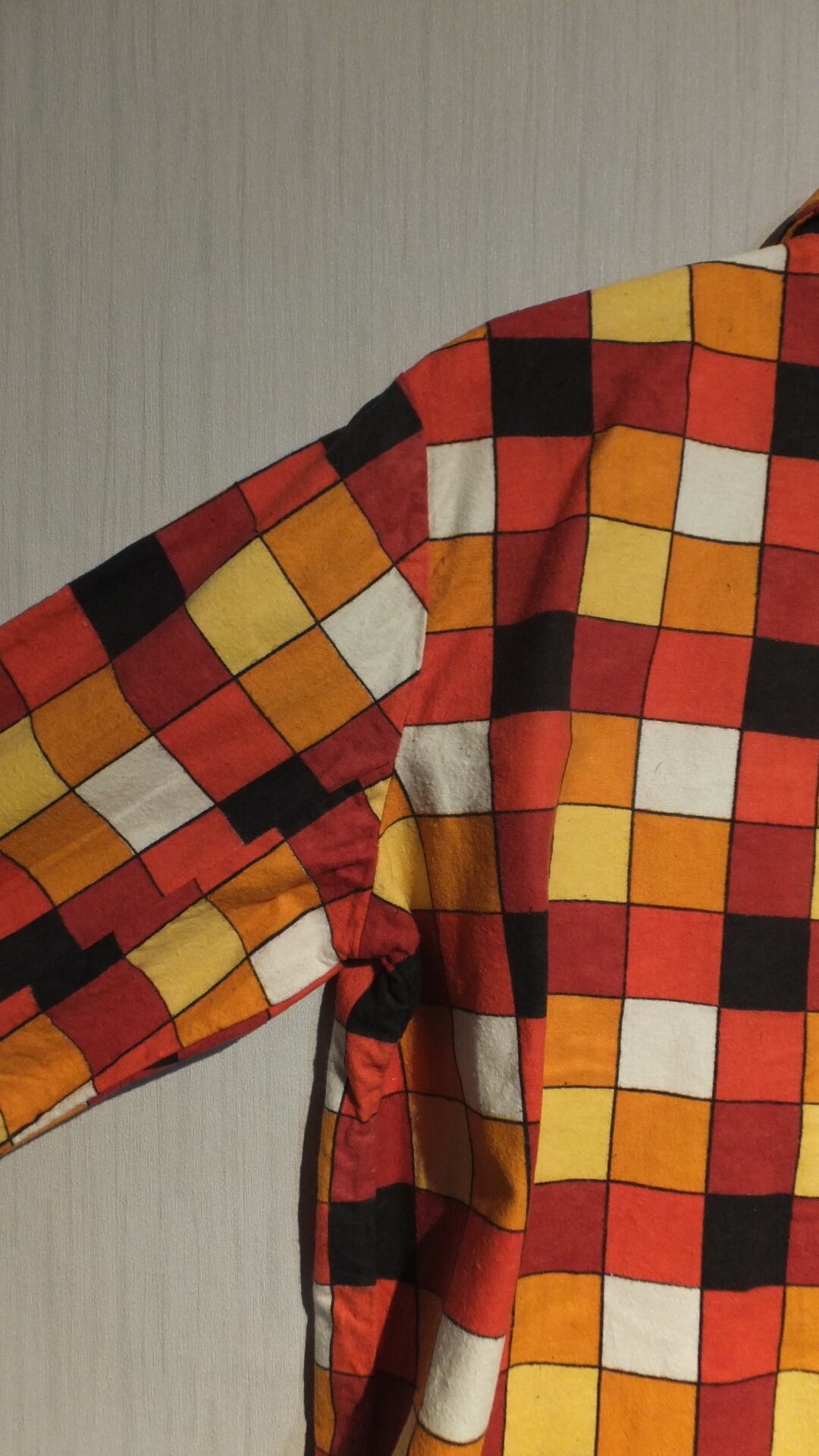 このようなチェックの柄は昔のヨーロッパのワークシャツに見られる類のものであることから、ワークシャツ/作業着として作られていると判断しております。