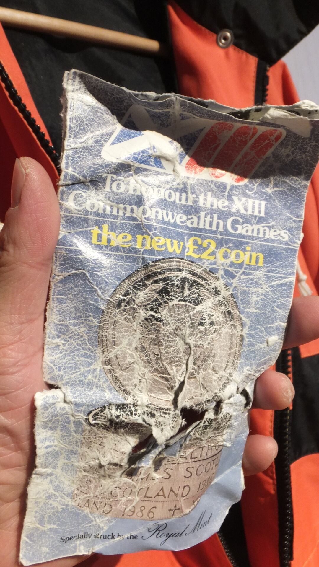 ジャケットの内ポケットに入っていた、XIII Commonwealth Games (イギリス連邦内のスポーツ大会)記念メダルのパンフレットに、1986年との記載があり、大会開催時の年とも符合します。このパンフレットは仕入れ時にすでに洗濯後の状態でした。こちらはポケットに入れて発送いたします。