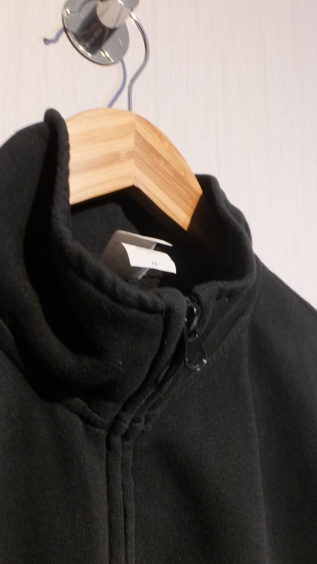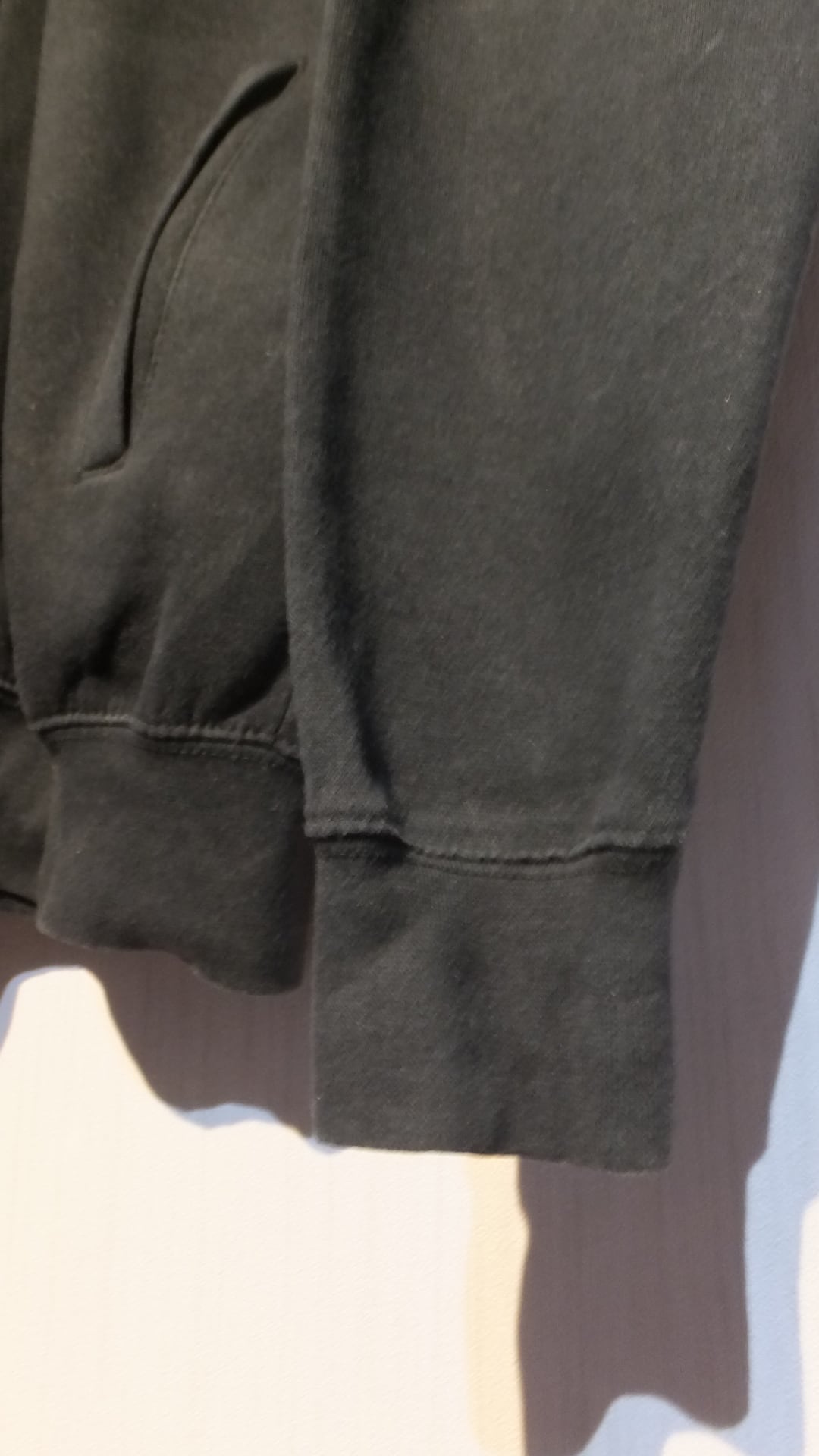寸法: 着丈: 66.5 cm(ユニクロのスウェットシャツ 長袖 男女兼用Mサイズとの比較値 + 1.5 cm)、身幅: 56 cm(同比較値 - 0.5 cm)、肩幅: 45 cm(同比較値 - 4 cm)、袖丈: 67 cm (※ 比較なし、参考値)