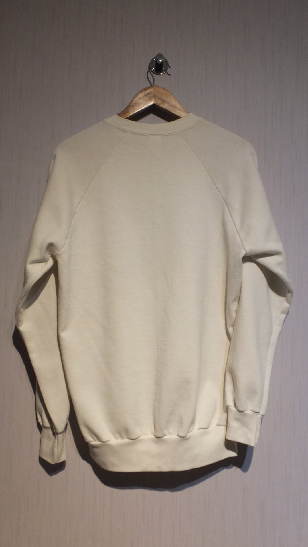 おそらく1980年代後半~90年代前半に製造されたとみられる、アメリカ製のスウェットです。タグ(Anvil 旧タグ)の表記と全体の雰囲気から上記のように推察しております。詳細不明。