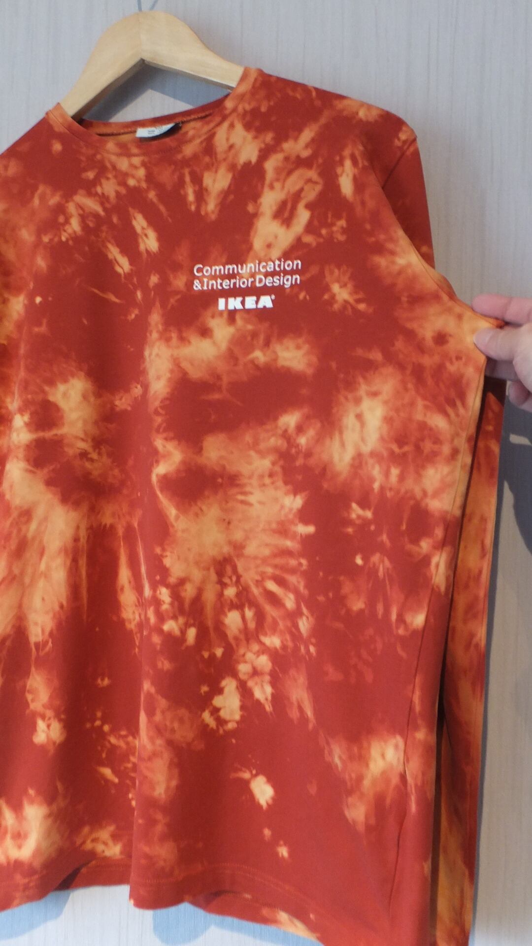 IKEA の企業ロゴと、Communication & Interior Design というプリントが両面に入っております。おそらく従業員の方が使用する作業着の類ではないでしょうか。