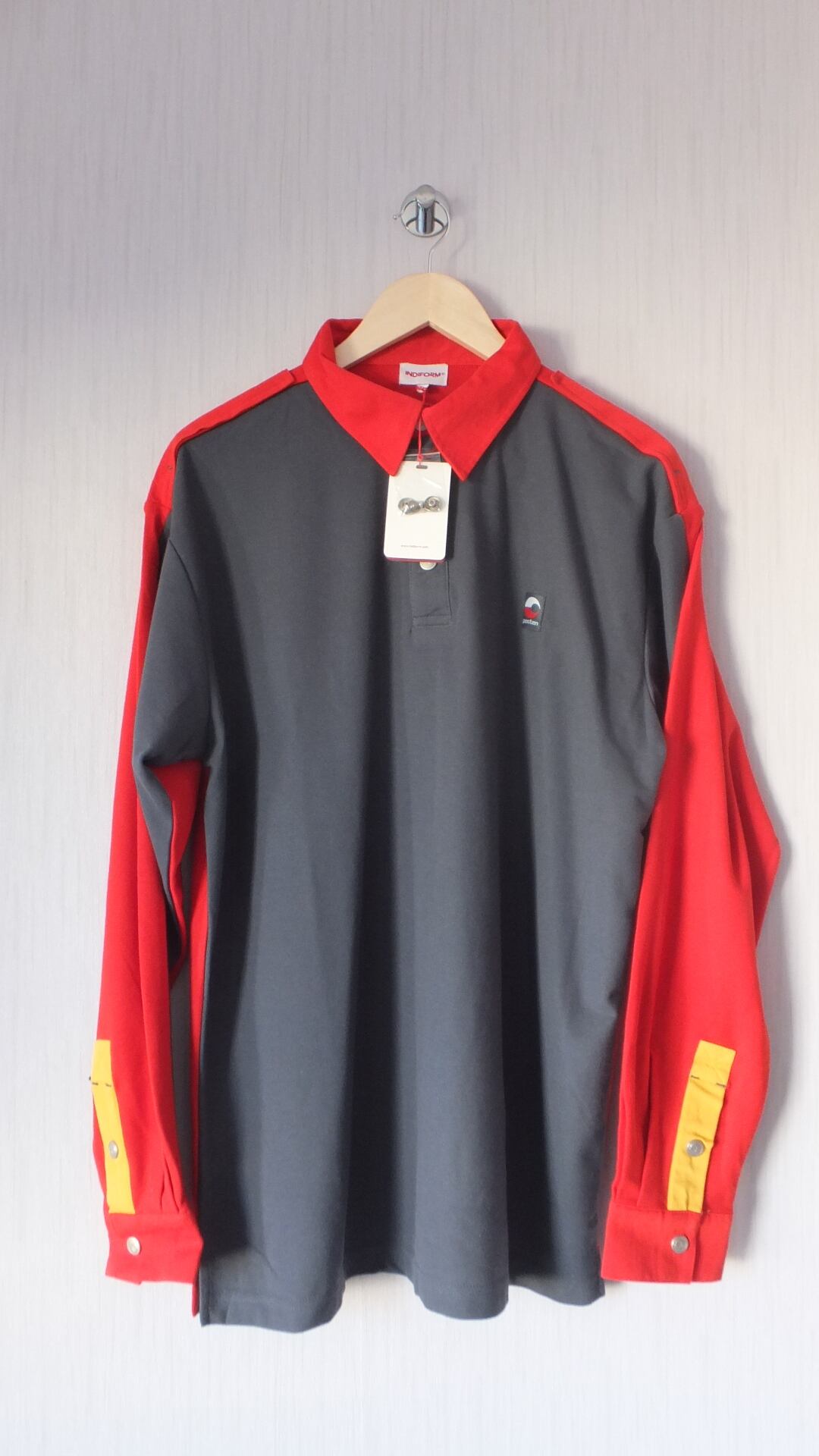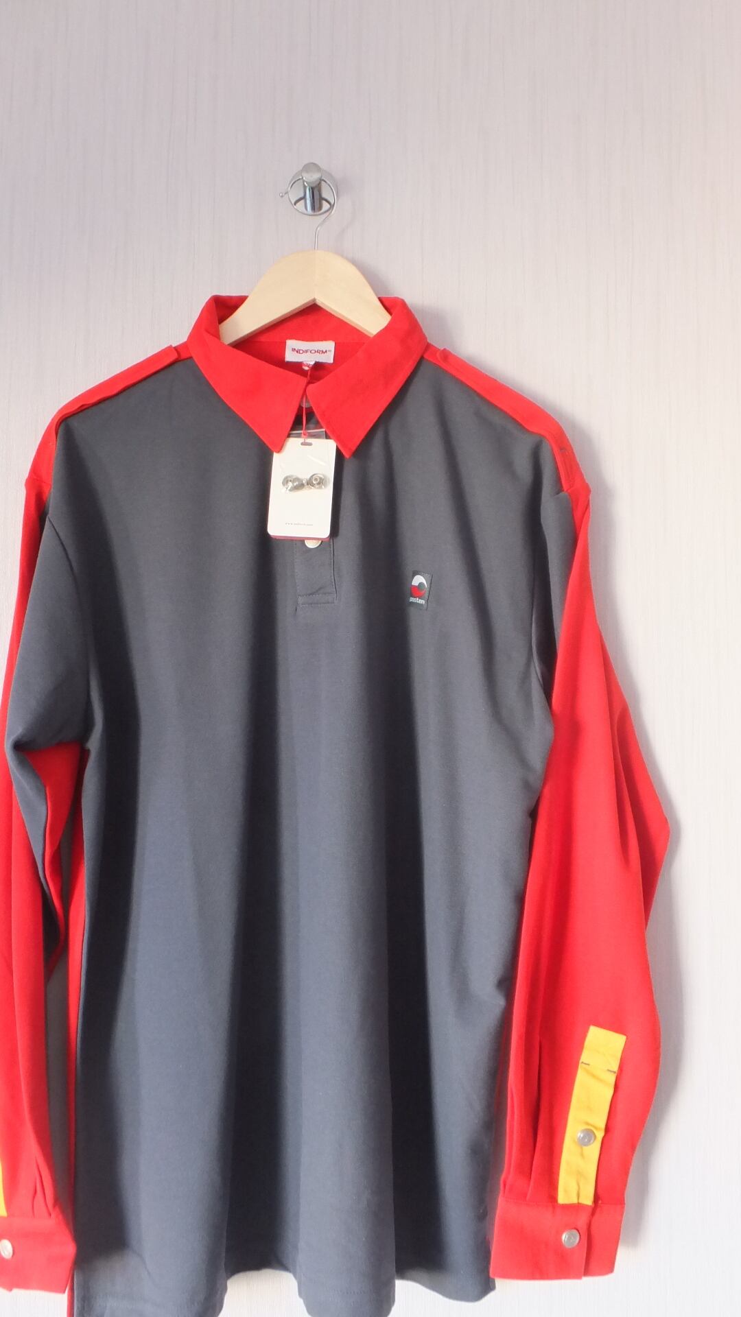 出荷時タグ付き未使用新品 ノルウェー郵便 posten 会社ロゴパッチ入り長袖ポロシャツ 表示サイズXL 日本サイズ概ね男女兼用XL以上相当 作業着 企業物古着