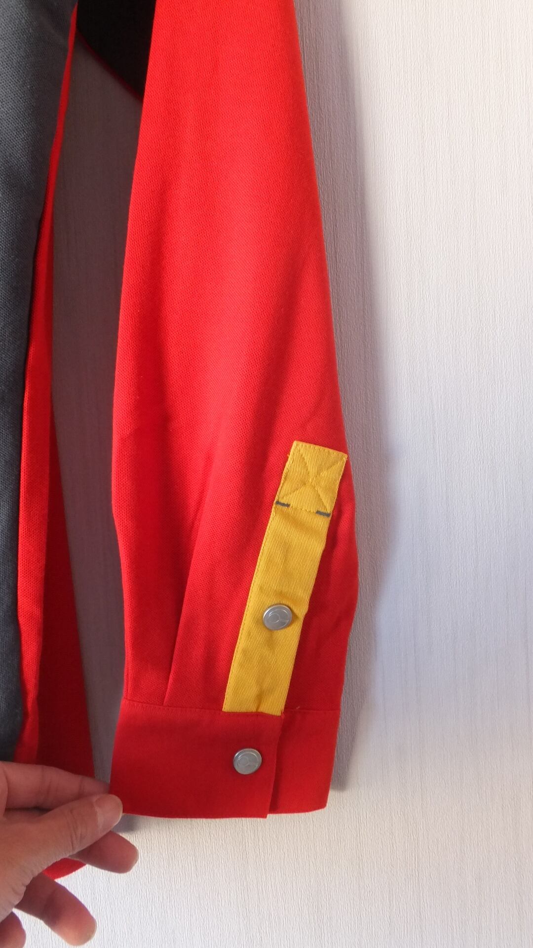 寸法: 着丈: 77 cm(ユニクロのウォッシャブル3Dニットポロシャツ 長袖 男女兼用XLサイズとの比較値 + 5 cm)、身幅: 60 cm(同比較値 + 1 cm)、肩幅: 55 cm(※ 比較値なしのため参考値)、袖丈: 65.5 cm(※ 比較値なしのため参考値)