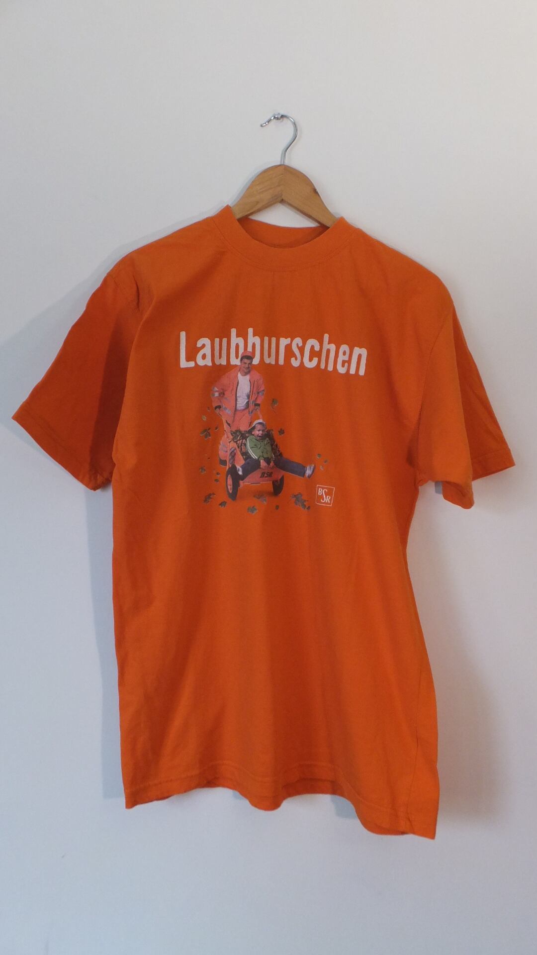 レア度高! ベルリン都市清掃公社(BSR) Tシャツ ドイツ語のシャレプリント オレンジ色 サイズ表示L(日本サイズL~XL相当)企業物古着