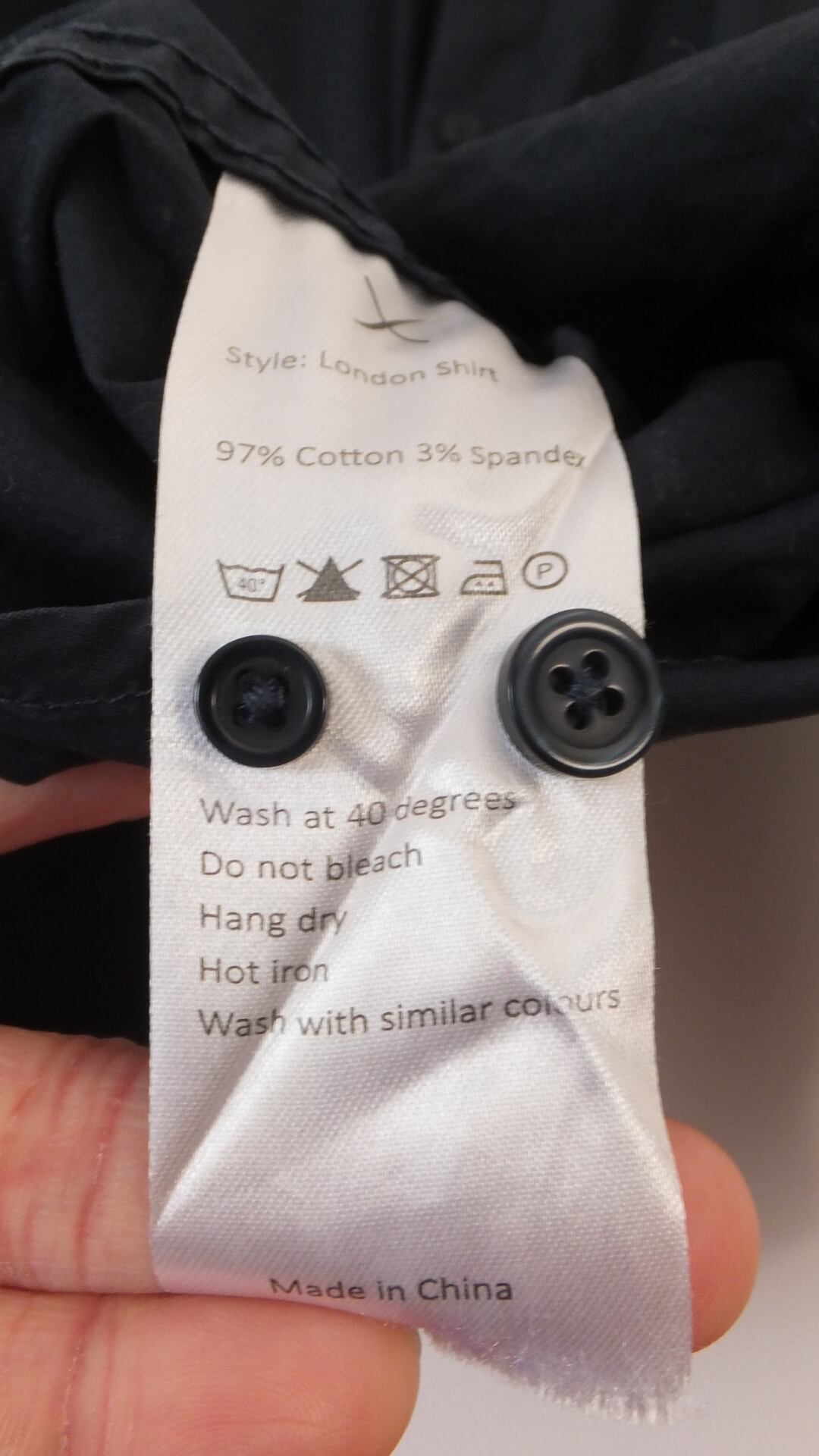 寸法: 着丈: 79cm(ユニクロのLサイズのシャツとの比較値 + 1cm)、身幅: 61.5cm(同比較値 +2.5cm)、肩幅: 49cm(同比較値 + 1.5cm)、袖丈: 65cm (同比較値 + 3cm)