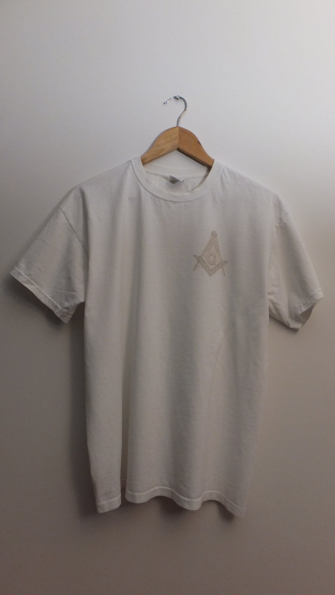 フリーメイソン ロゴ入り Tシャツ 白 FRUIT OF THE LOOM サイズ表示L(日本サイズ概ねL相当)組織物古着