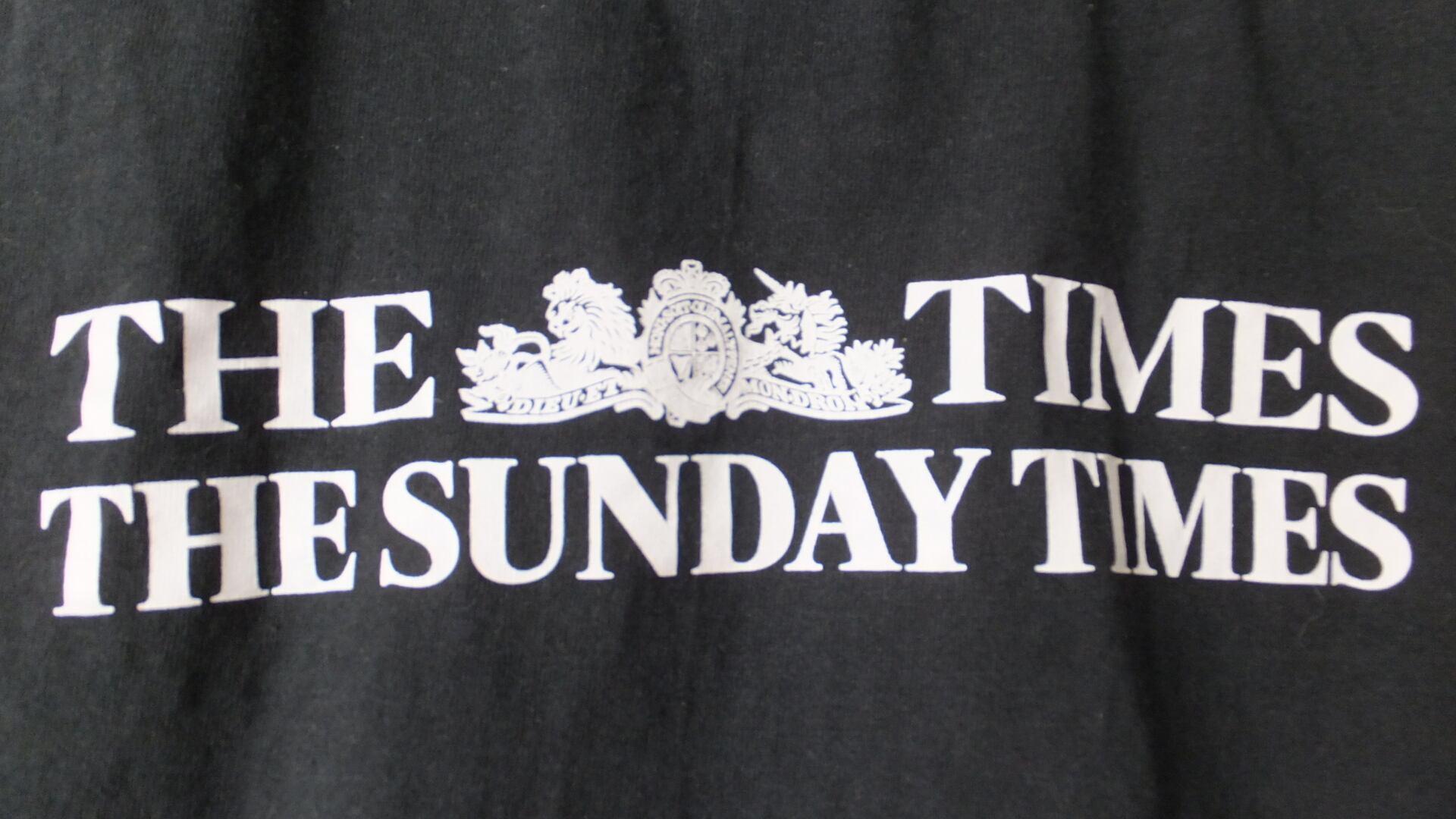 THE TIMES / THE SUNDAY TIMES (イギリスの方のTIMES、世界最古の日刊紙)両面ロゴ入り Tシャツ 黒 表示サイズM 日本サイズ概ねM以上相当
