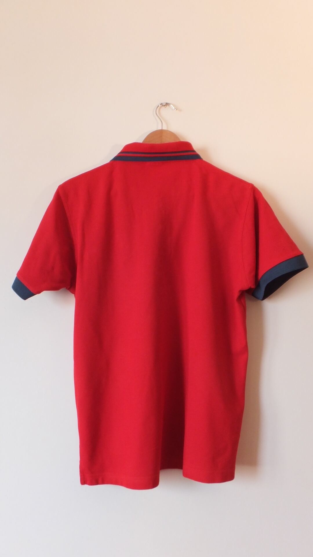 サイズ表記はMで、日本基準でもおおむねMサイズに相当します。下寸法欄にユニクロのポロシャツMサイズ(ドライカノコポロシャツ 半袖)との比較値を掲載しておりますので参考になさってください。