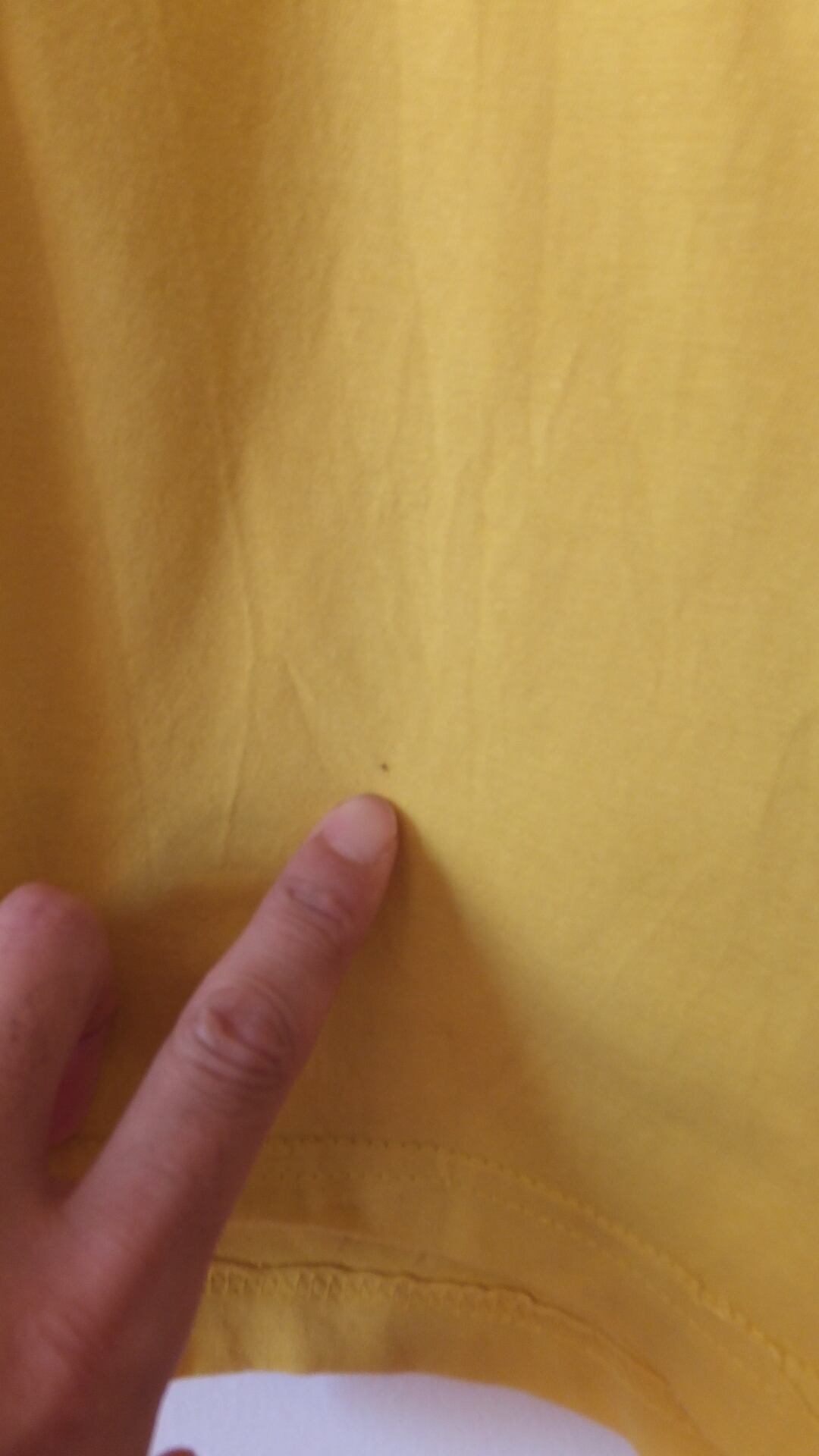 寸法: 着丈: 65 cm(ユニクロのTシャツMサイズとの比較値 - 2 cm)、身幅: 54 cm(同比較値 + 4.5 cm)、肩幅: 46 cm(同比較値 + 3.5 cm)、袖丈: 19 cm(同比較値 - 1.5 cm)