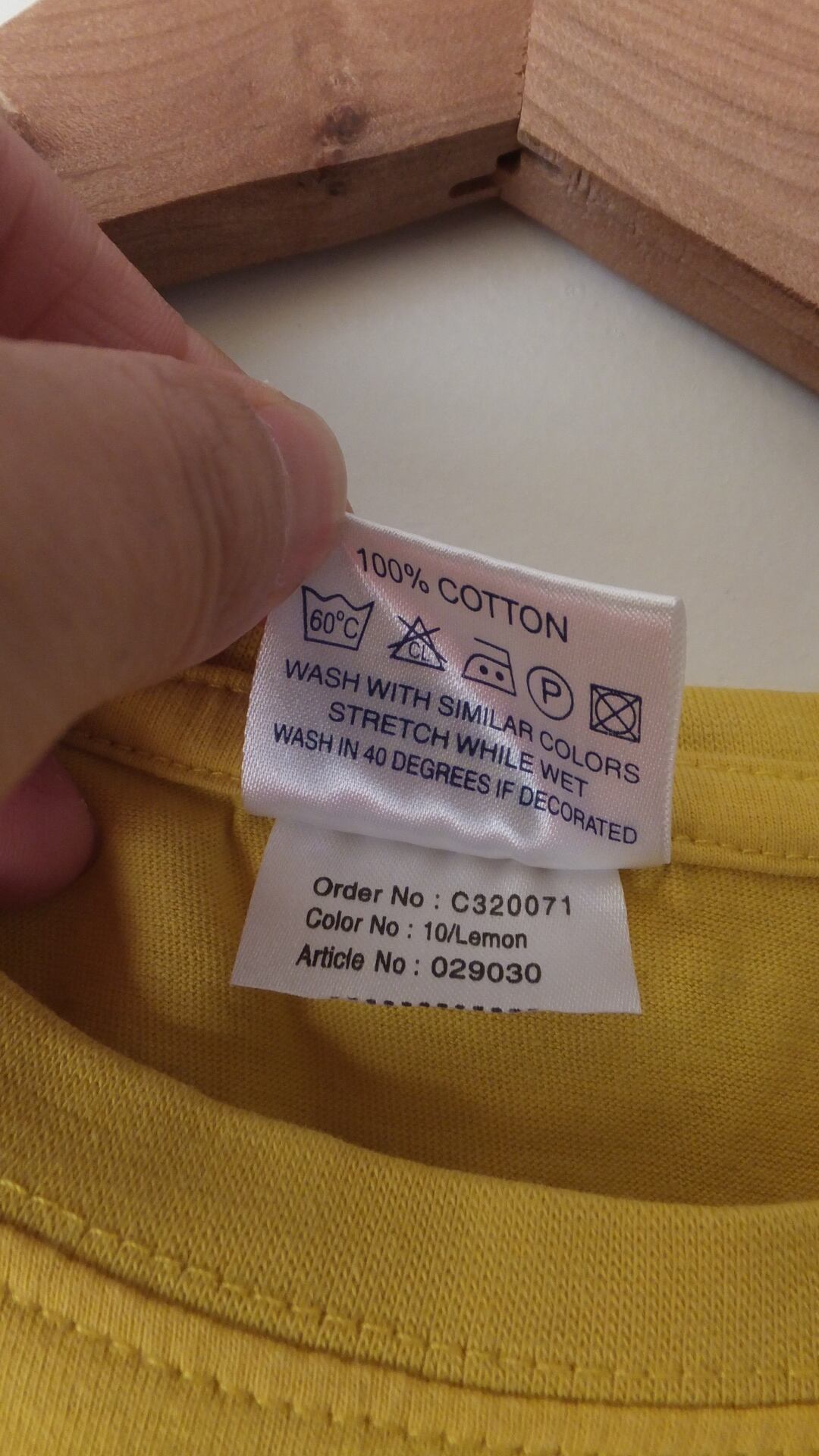 サイズ表記はLで、日本基準では概ねM~Lに相当します。ユニクロのTシャツMサイズとの比較値を参考のため、下記寸法欄に記載しておりますのでご確認ください。