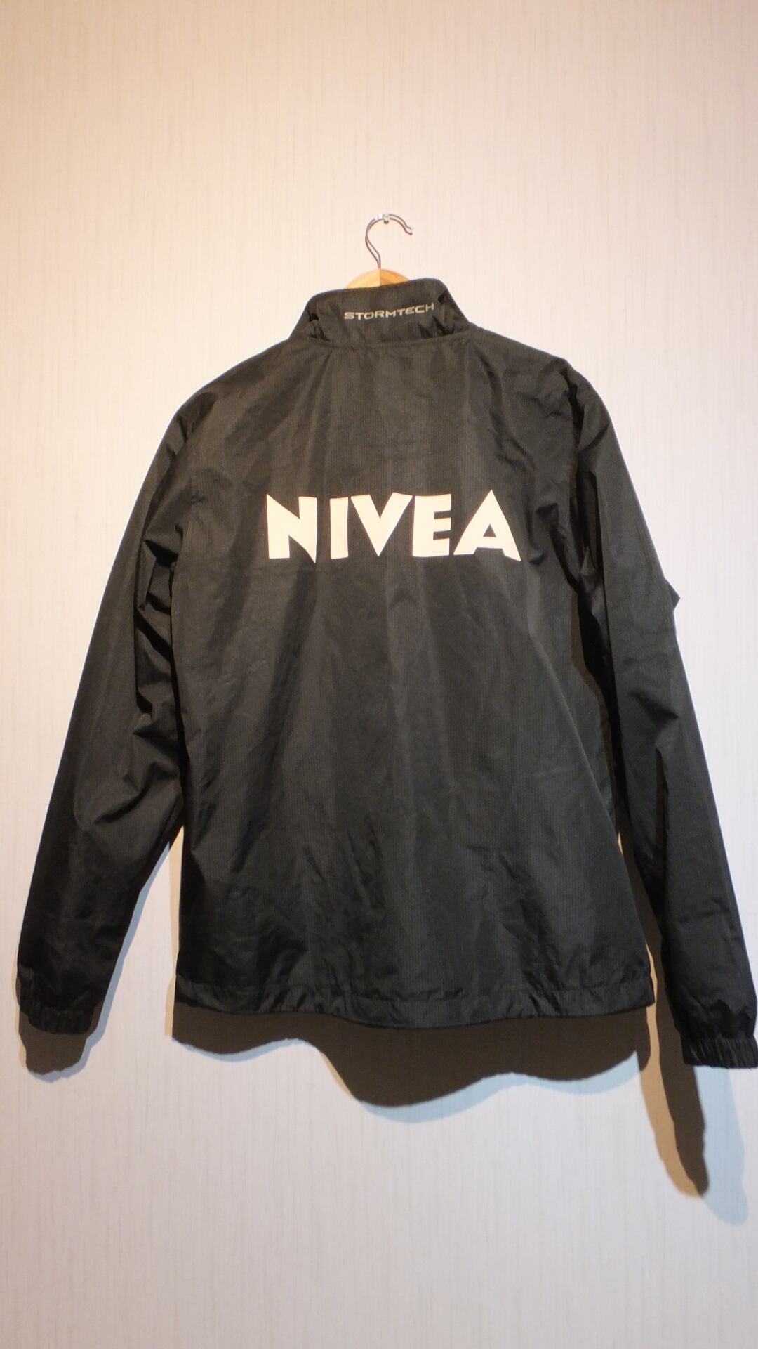 NIVEA / Elastoplast ニベア / エラストプラスト 両面ニベアロゴ入り 防水ジャケット 黒 表示サイズM 推奨着用者身長170cm(日本サイズ概ねL相当 ※男女兼用サイズ)