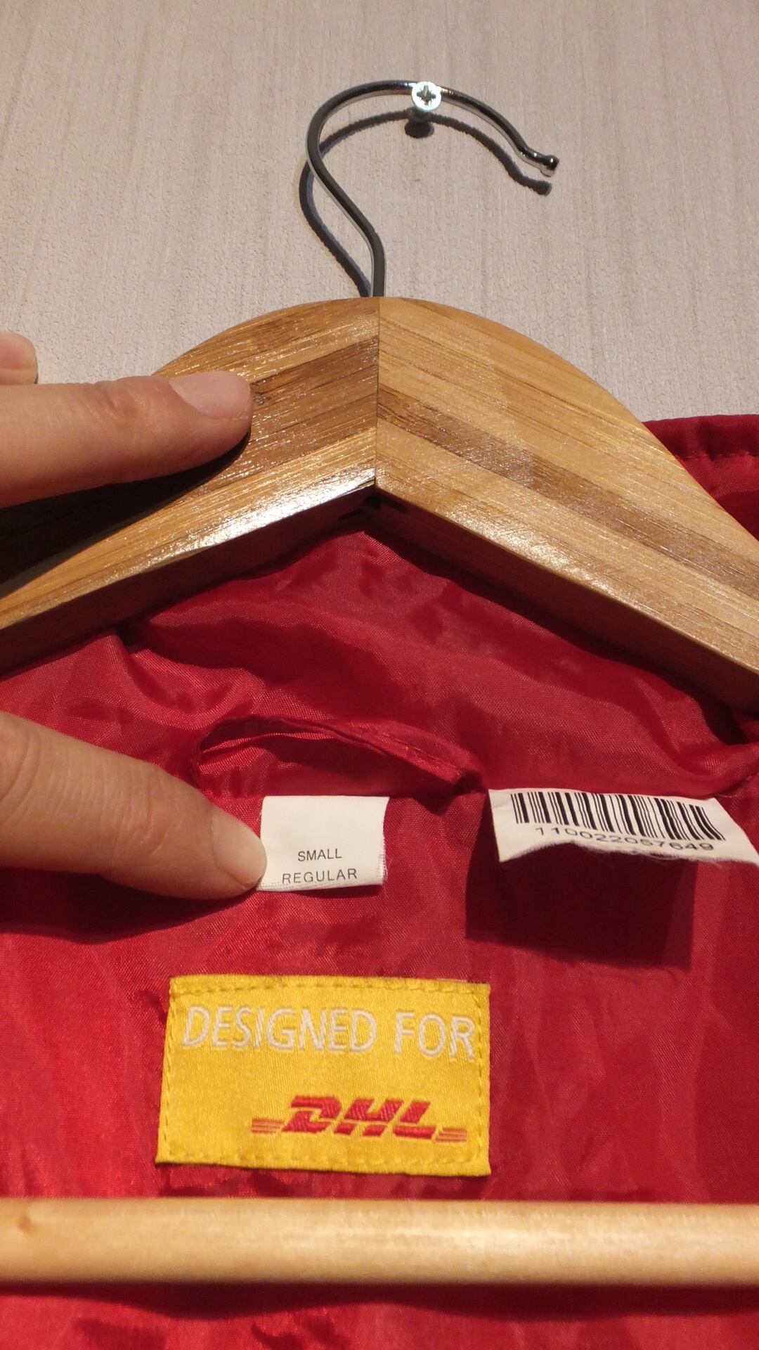 ジッパー部分と内タグにDHL入りの中綿ジャケット。