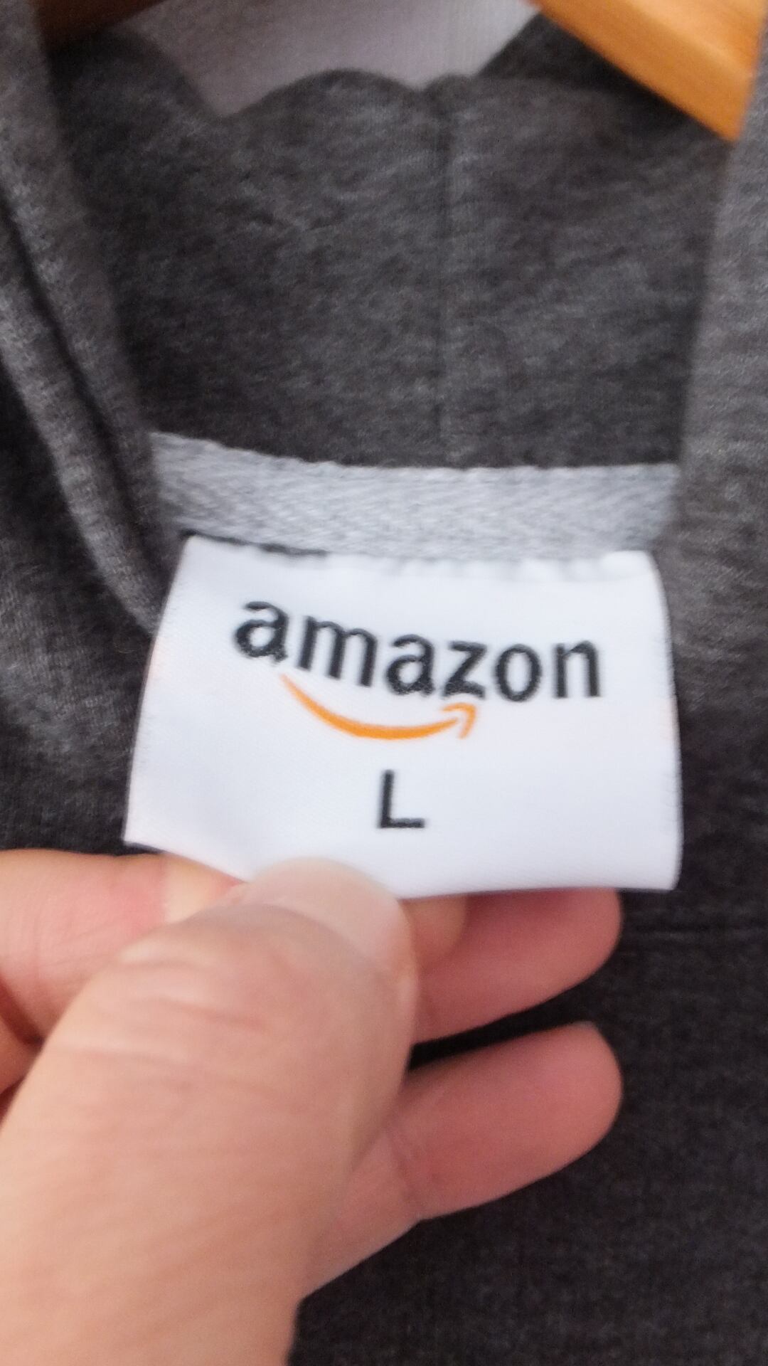 amazon アマゾン 会社ロゴ刺繍入り フード付きスウェットパーカー グレイ サイズ表示L 日本基準概ねM~Lの中間相当(メンズサイズ) 企業物古着