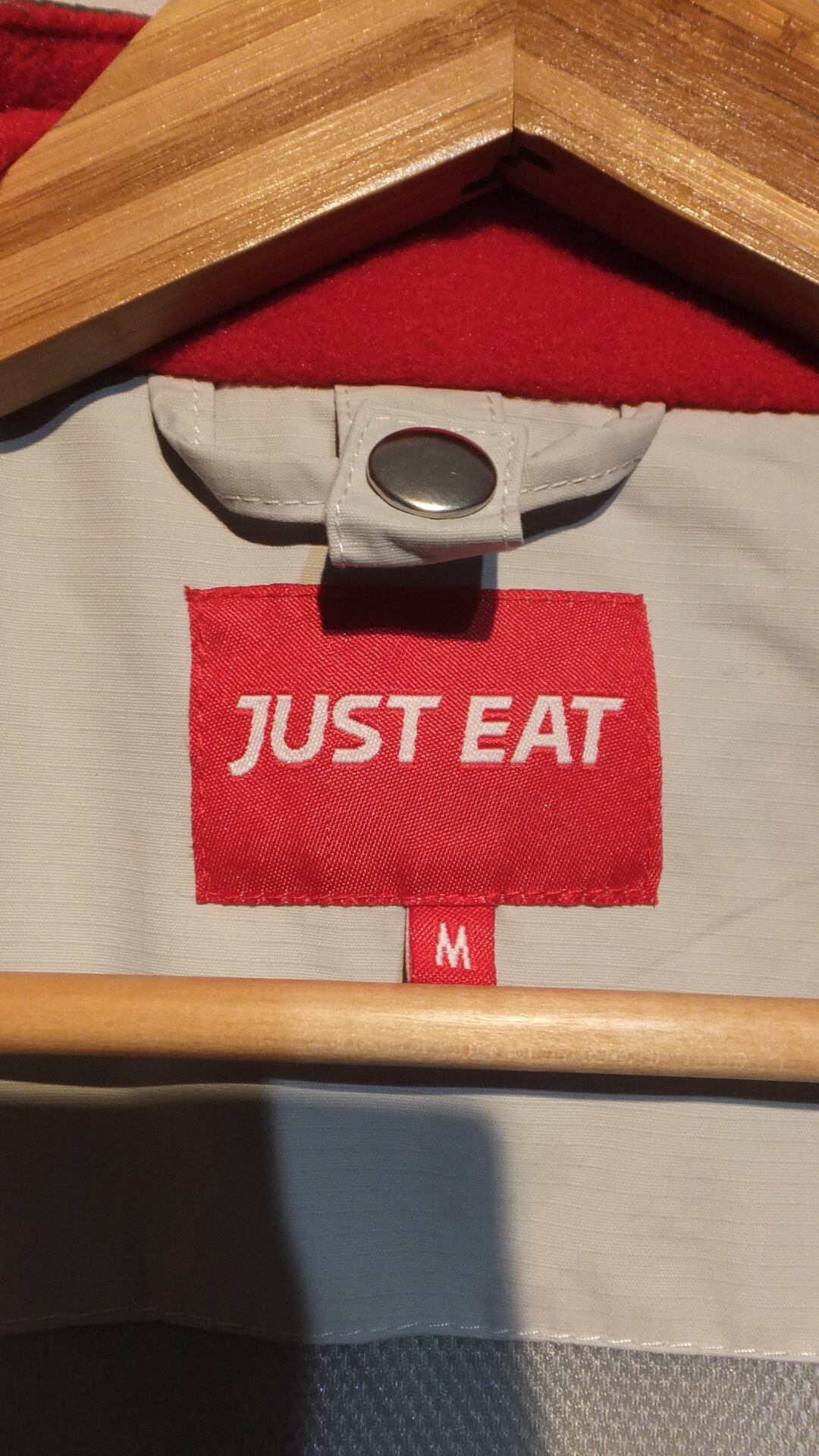 欧州最大のフードデリバリー業者 JUST EAT 会社ロゴプリントたくさん ナイロン/ポリエステル従業員用ジャケット 表示サイズM 日本基準サイズ概ねXL以上相当 (メンズサイズ)