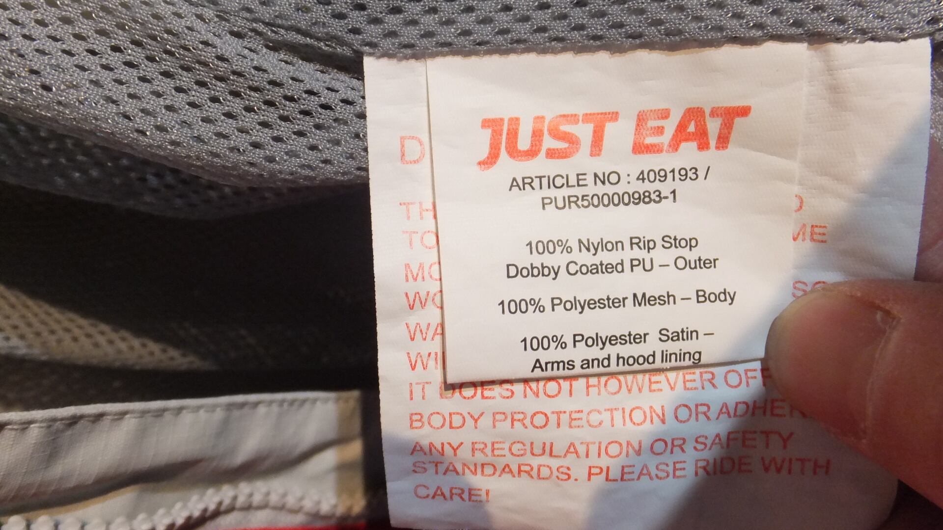 昨年2020年、Takeaway.com との統合によりデリバリーサービス業者として欧州最大の地位に躍り出た、JUST EAT の従業員用ジャケットです。イギリスでは相当有名、らしいです。