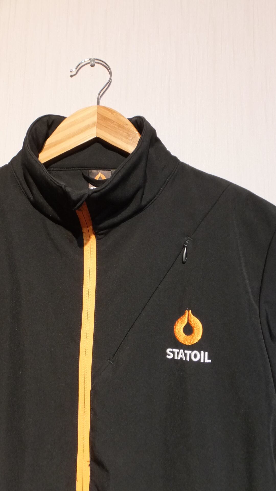 産油国ノルウェーにおいて、2000年まで国営企業だった石油会社 STATOIL スタトイル のロゴ入り従業員用ソフトシェルジャケット。