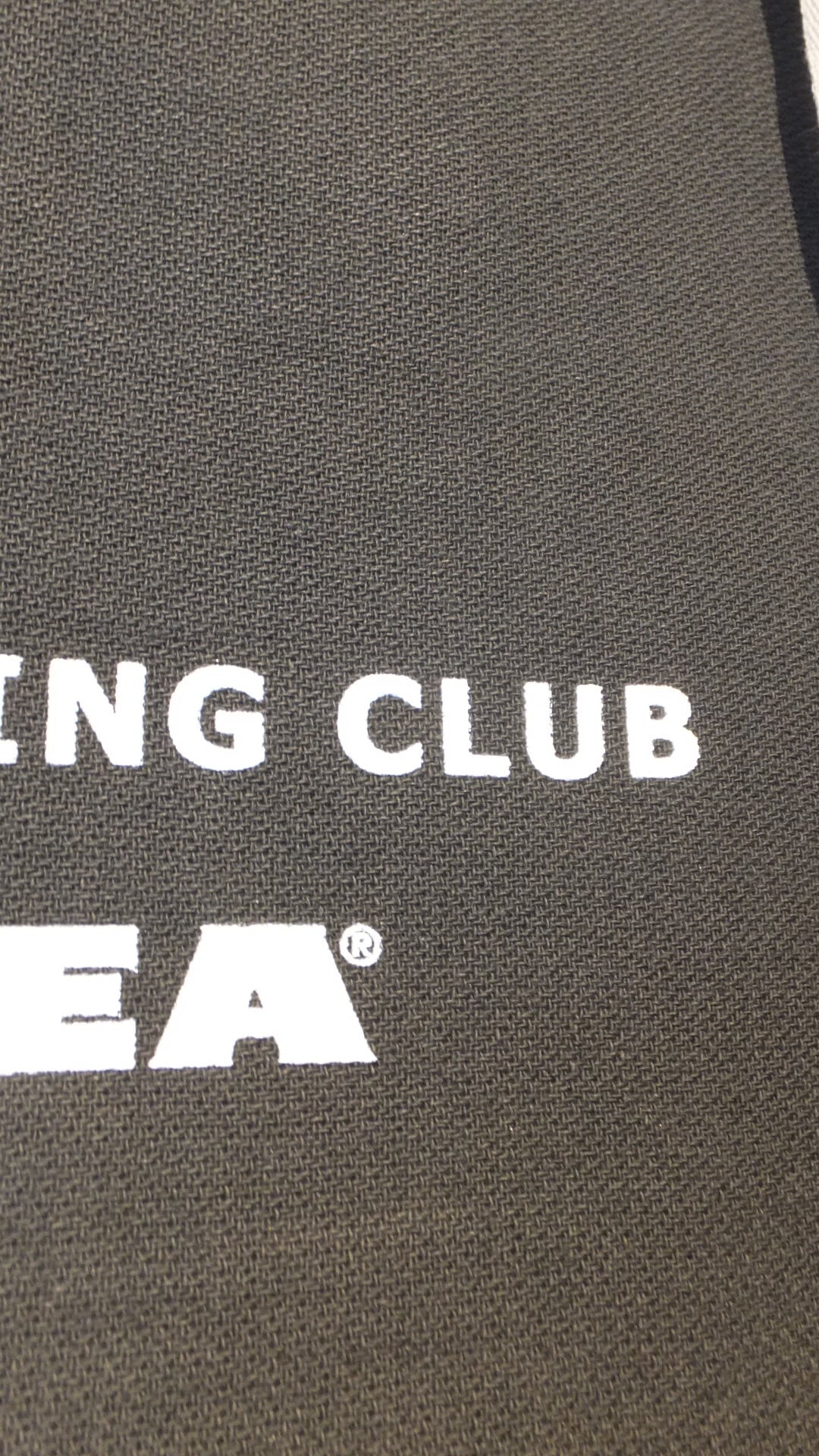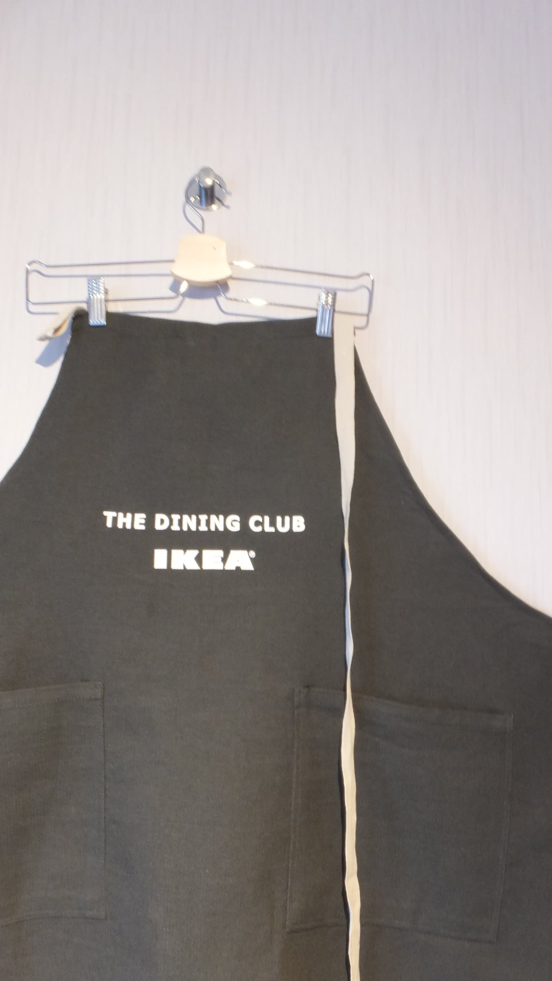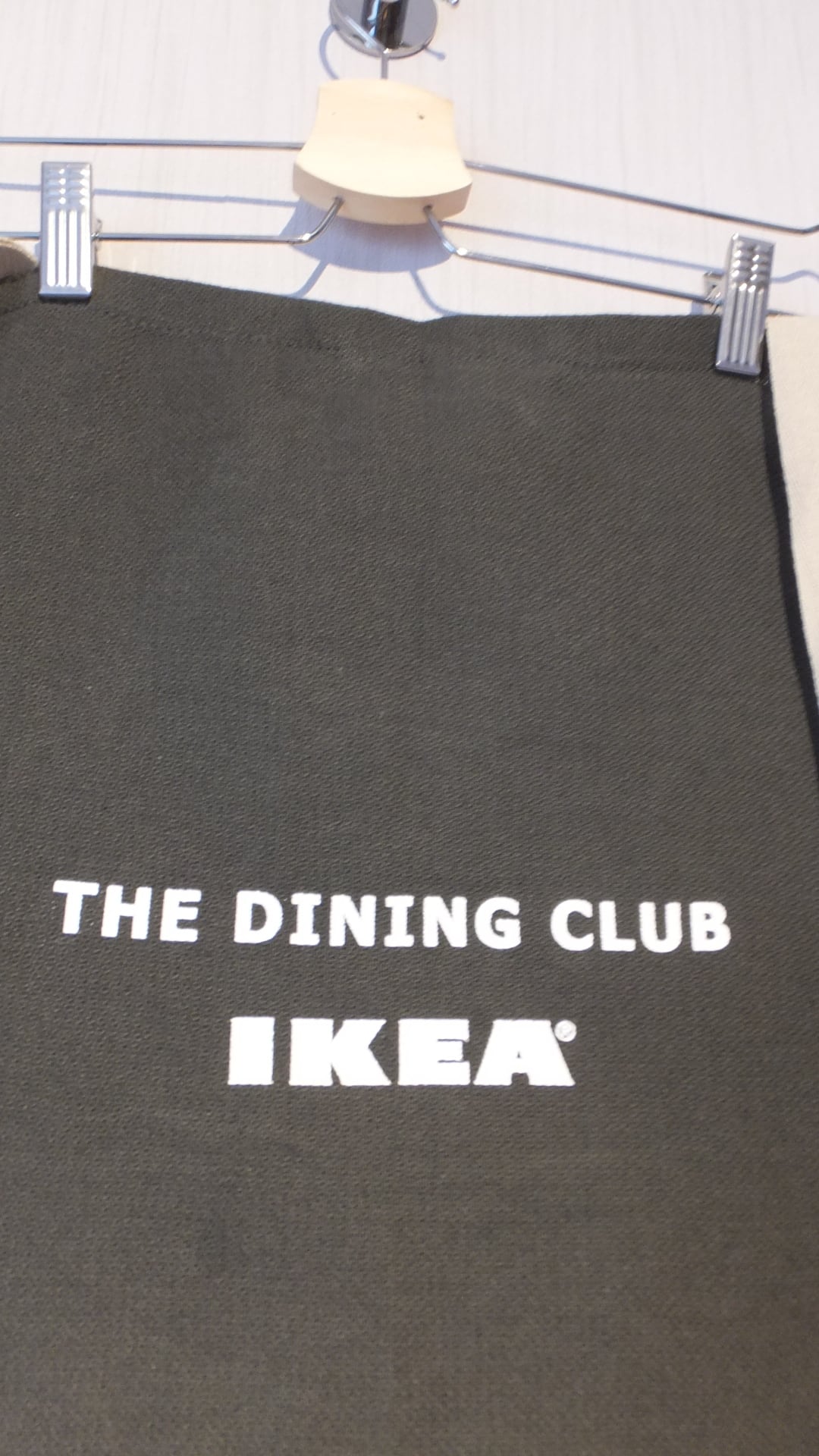 2016年の秋、ロンドンで期間限定ポップアップショップとして開設された THE DINING CLUB のロゴ、および IKEA のロゴ入り。このイベントでは、利用者がにてIKEA製品を使い調理しパーティーを開催する、といったものだったようです。スタッフか利用者かは不明ですが、会場で利用されたものではないでしょうか。