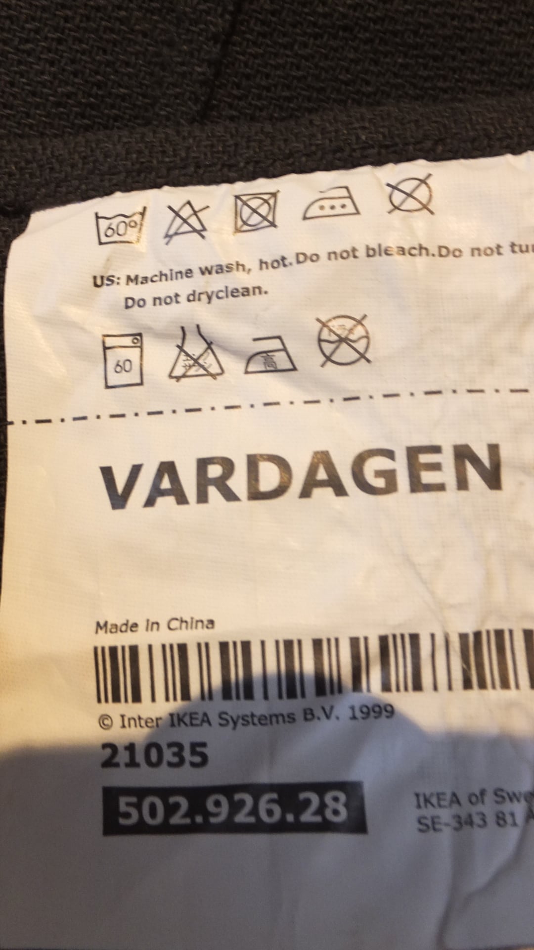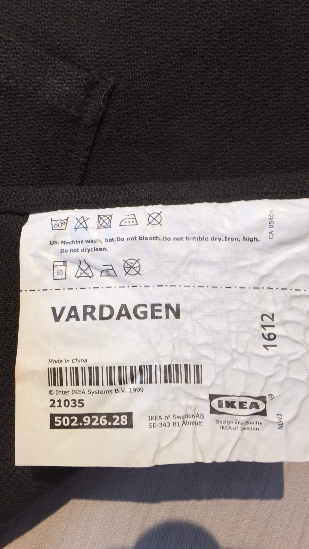 タグに記載されている VARDAGEN のエプロンは2026年現在でも継続して販売中ですが、ロゴが入らない無地のものです。