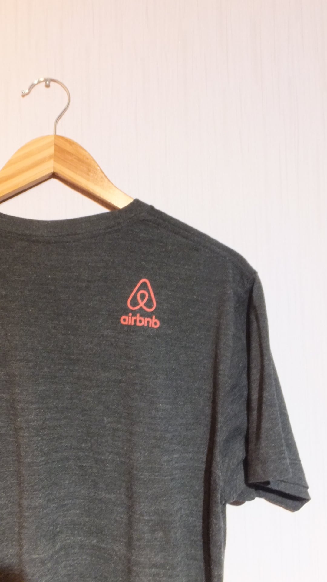 使った方も多いのではないでしょうか、宿泊施設などの斡旋サイト Airbnb エアビーアンドビー の企業ロゴ入りTシャツです。