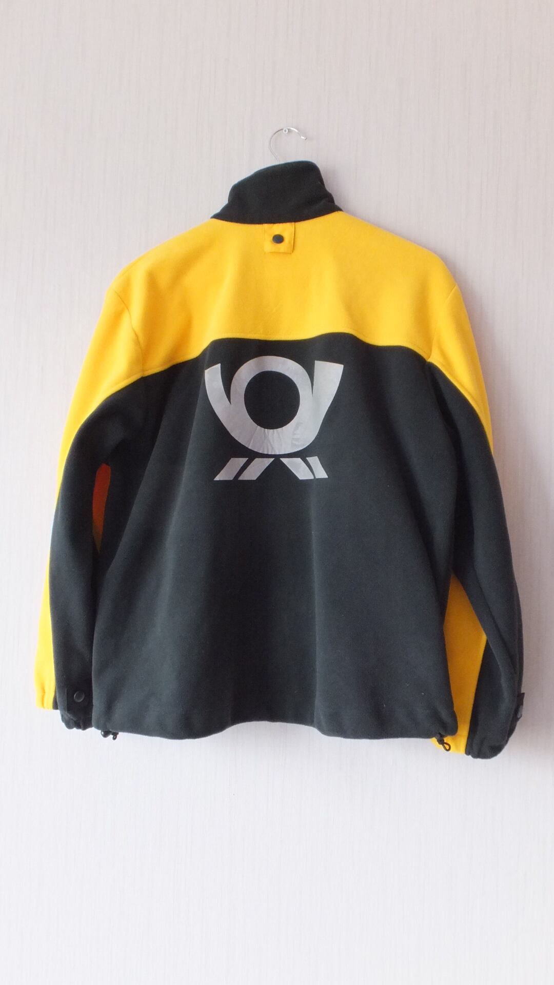 ドイツ郵便 (ドイツポスト) Deutsche Post 刺繍ロゴ入りフリース 裏面ラッパロゴ イエロー/ネイビー 日本基準サイズ概ねM相当(メンズサイズ)サイズ表示38/40 企業物古着 作業着
