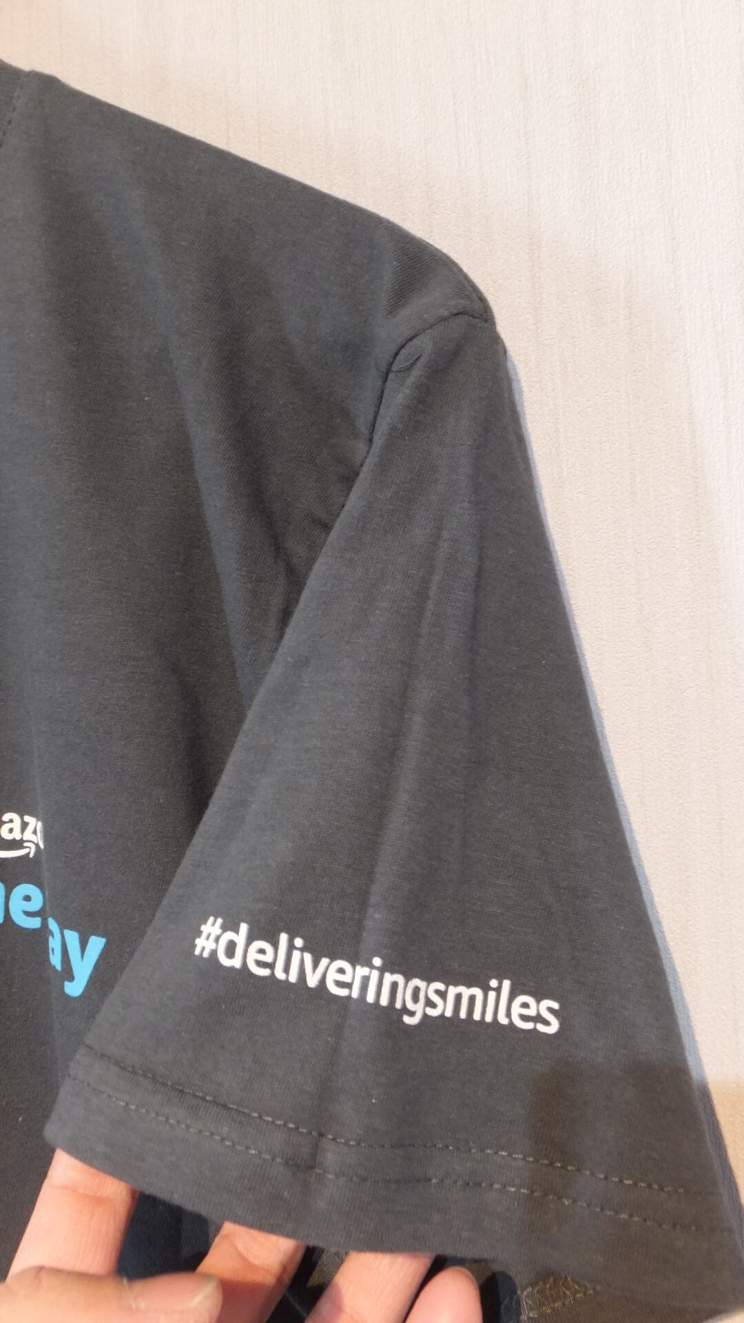 着用時左袖部分、#deliveringsmiles は 「笑顔をお届け」といった感じの主旨。