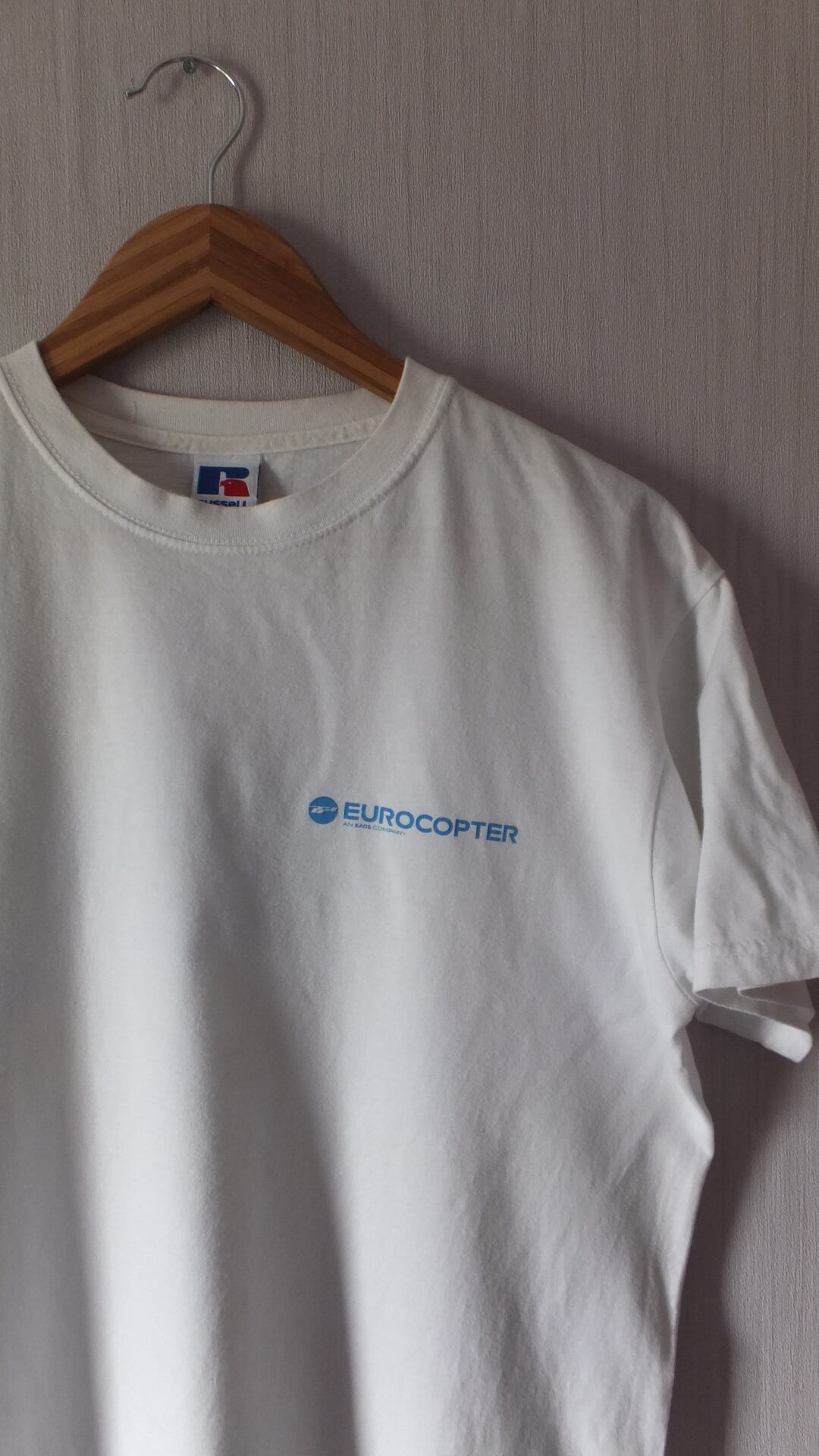 ユーロコプター EUROCOPTER ドイツ/フランスのヘリコプター会社(現 エアバス・ヘリコプターズ 2014年社名変更)両面プリントTシャツ 白 日本サイズ概ねM相当(男女兼用サイズ)表示サイズS ヘリコプター古着 ※写真1枚目はバックプリントです