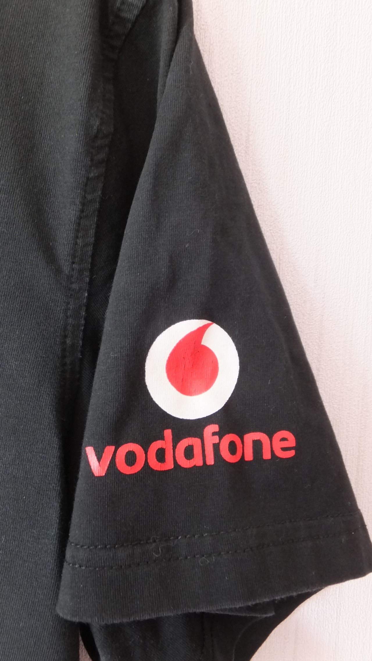 着用時左袖にはボーダフォン vodafone (イギリス本社の携帯電話会社、2006年に日本市場から撤退)のロゴがあるところから、ヨーロッパのいずれかの国で使用されていたものと推察できます。