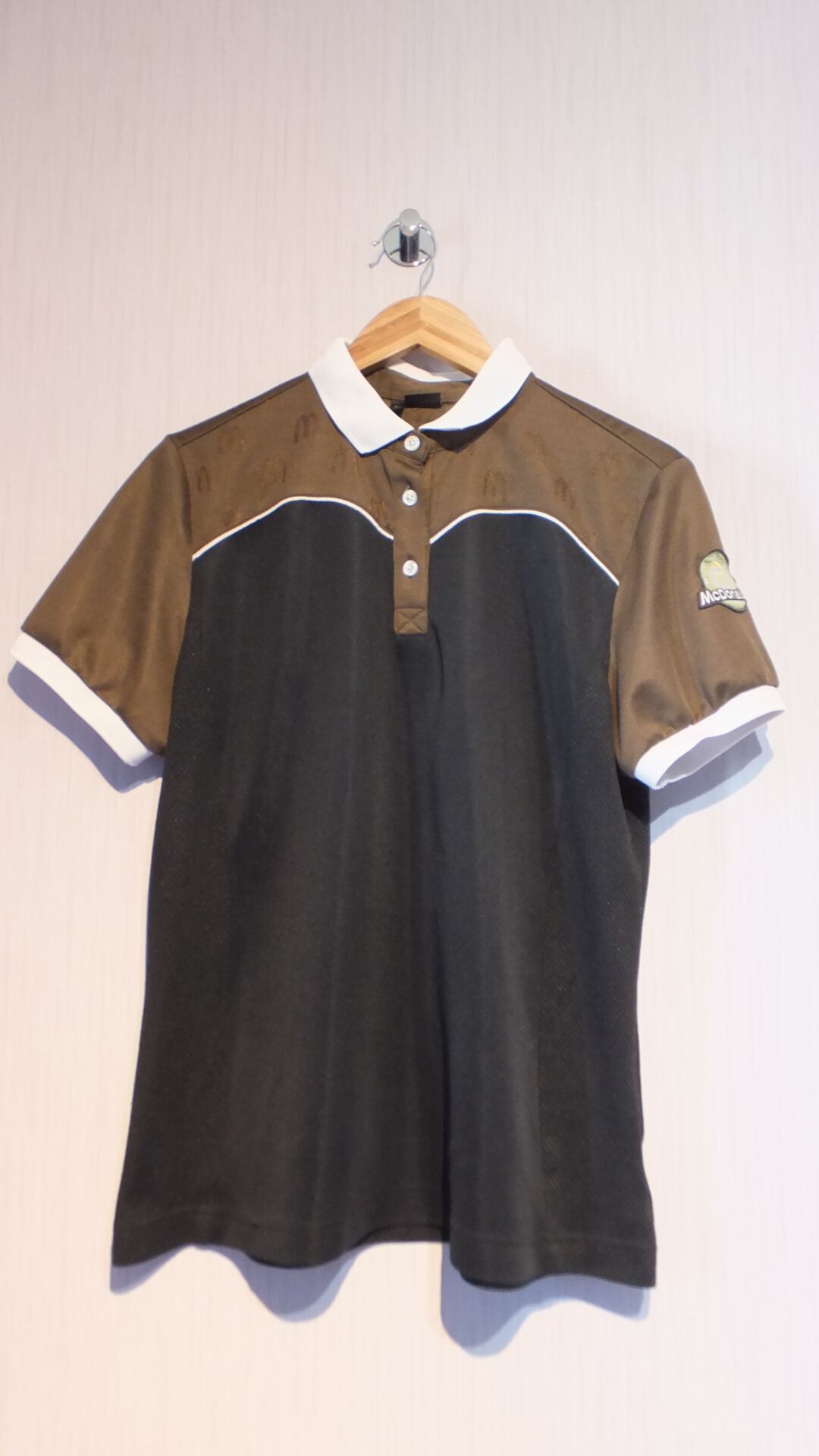 マクドナルドのアップリケと、キャッチフレーズの i'm lovin' it のタグが付いた、マクドナルドの作業着と思われる半袖ポロシャツです。