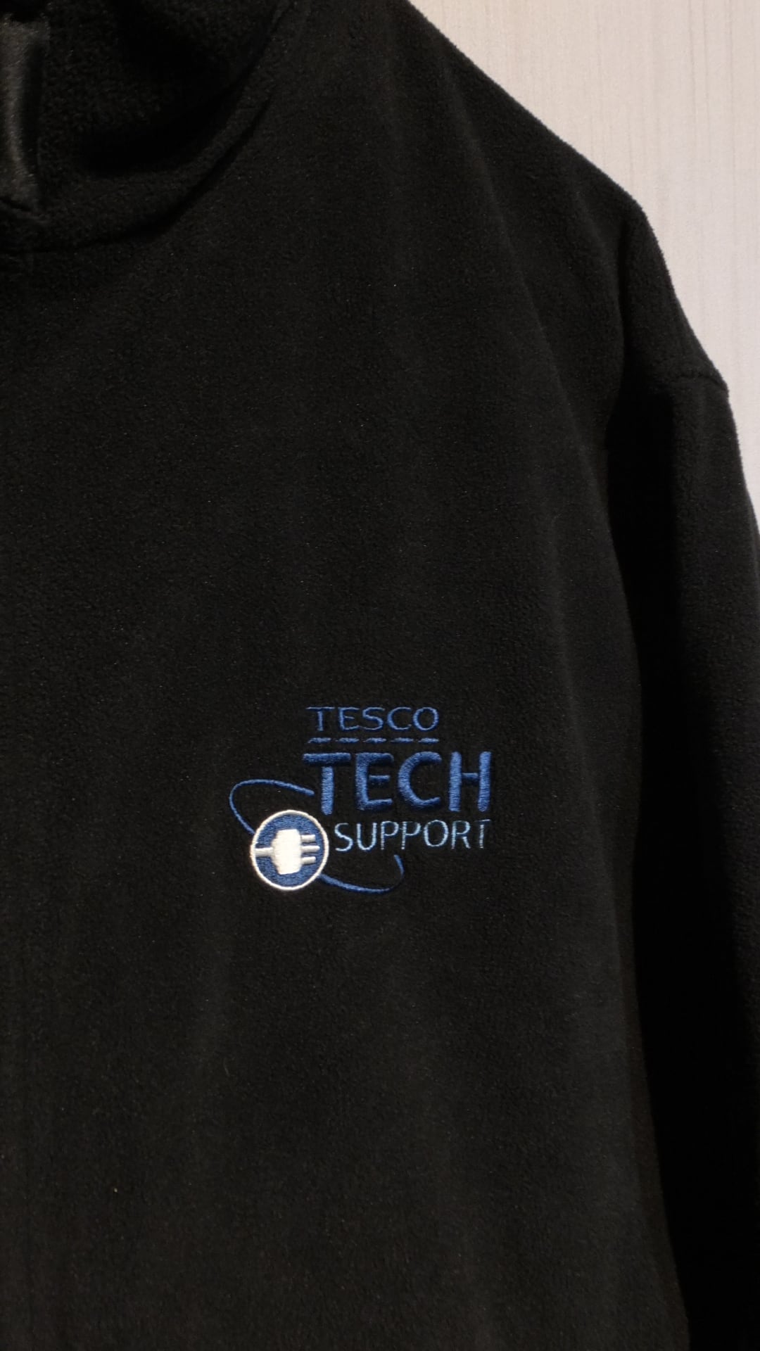 日本でもかつて営業していた、イギリスのスーパーマーケットチェーン TESCO テスコ が2008年に開始したテクニカルサポート部門、TESCO TECH SUPPORT テスコテクサポート の刺繍ロゴ入りフリースです。
