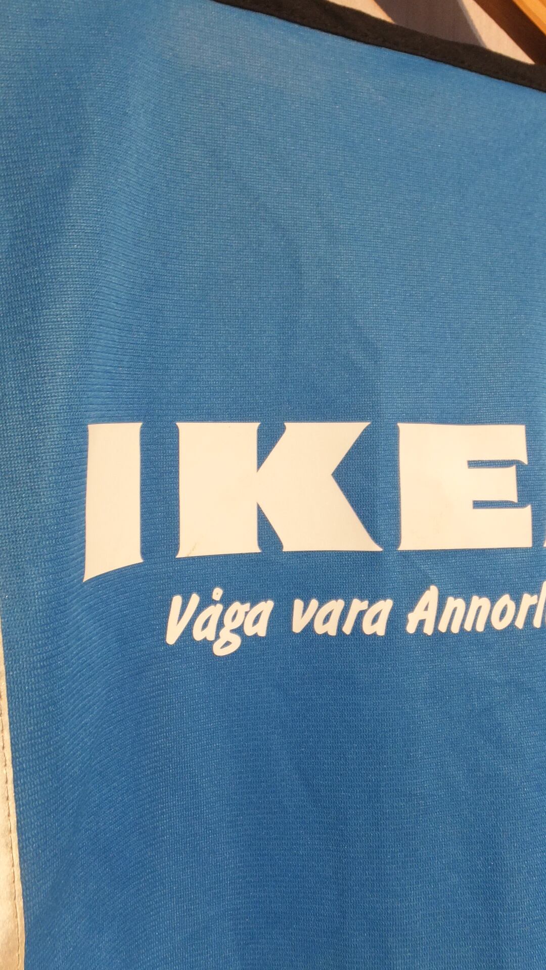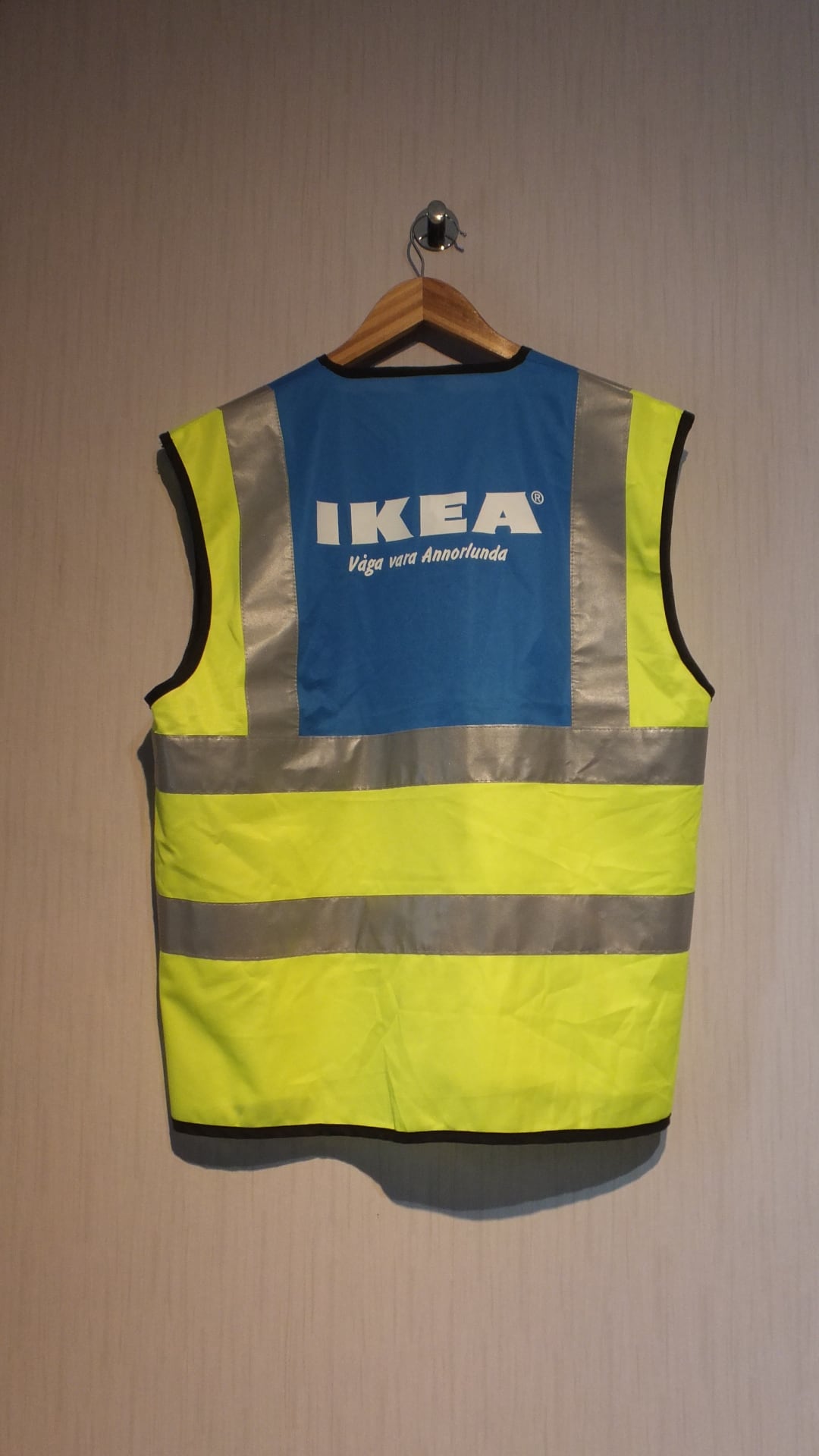 イケア IKEA 会社ロゴ及びスウェーデン語プリント入り ビブス 黄色/青 着丈67㎝、身幅58㎝、肩幅50㎝ ※写真1枚目はバックプリントです 企業物古着