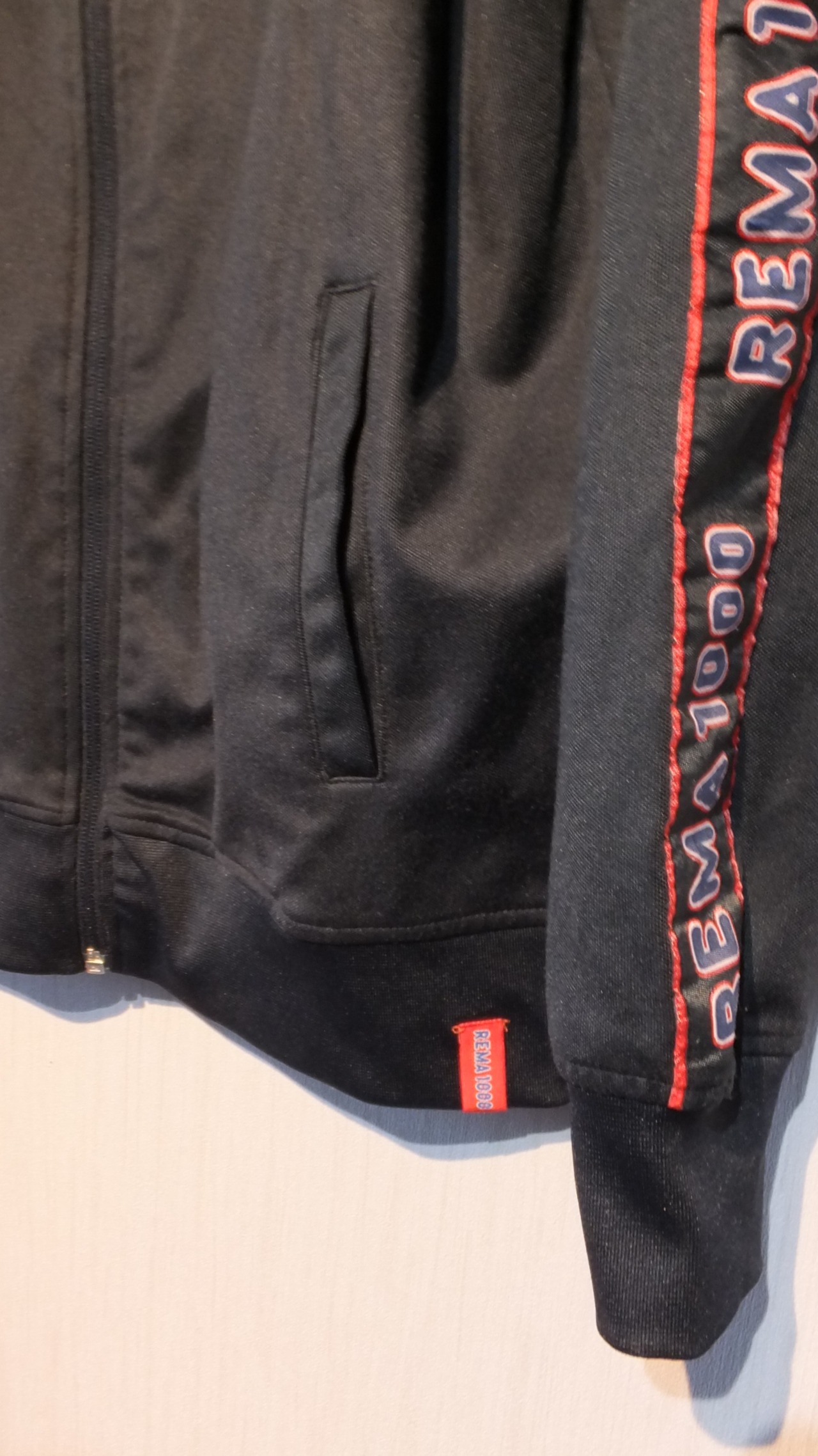 ノルウェーに本部を置き、主に北欧諸国で事業を展開するスーパーマーケットチェーン REMA 1000 のロゴ入りスウェット/ジャージです。