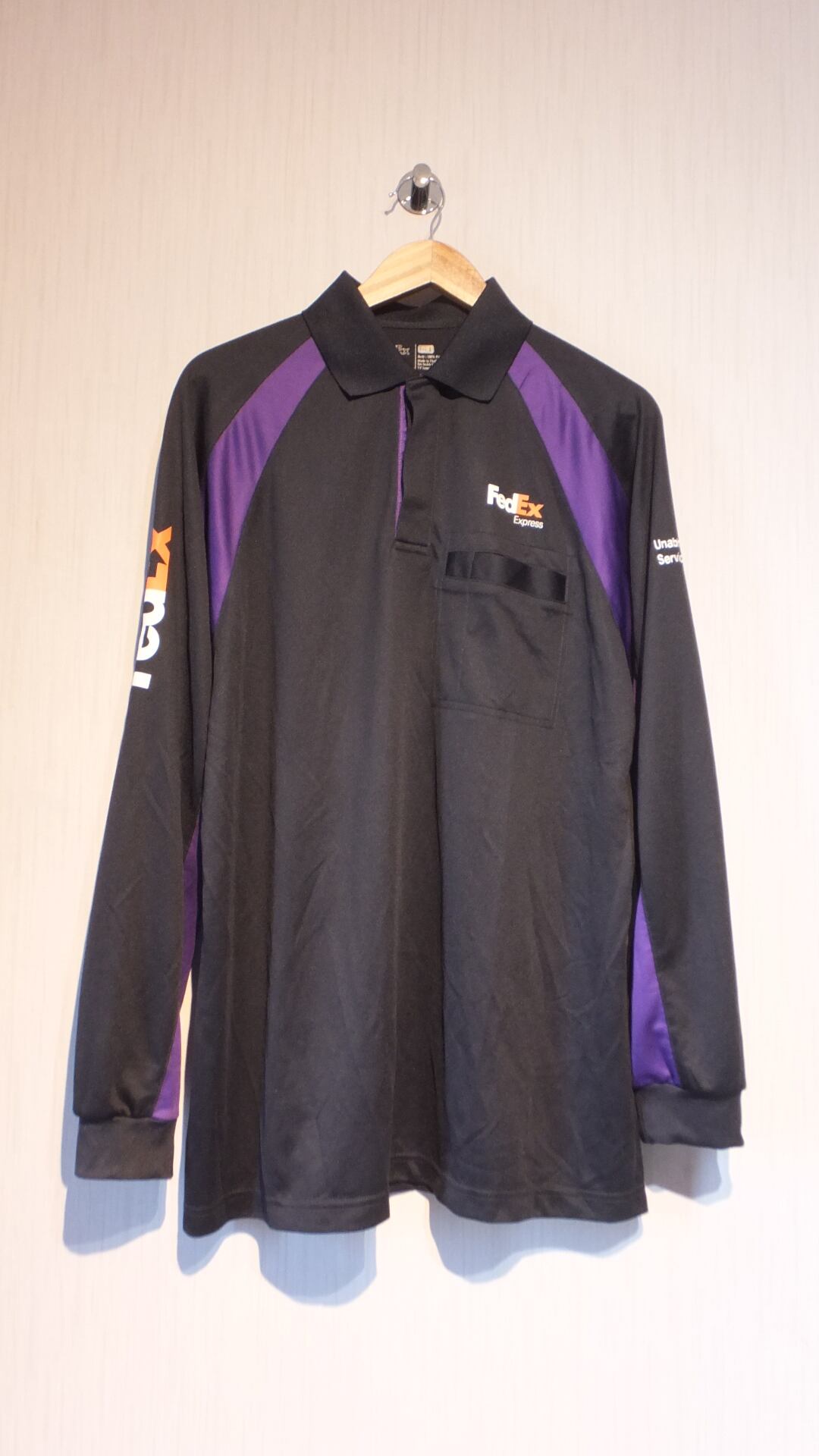アメリカ本社の物流世界最大手、FedEx フェデックス のロゴ入り作業員ポロシャツです。