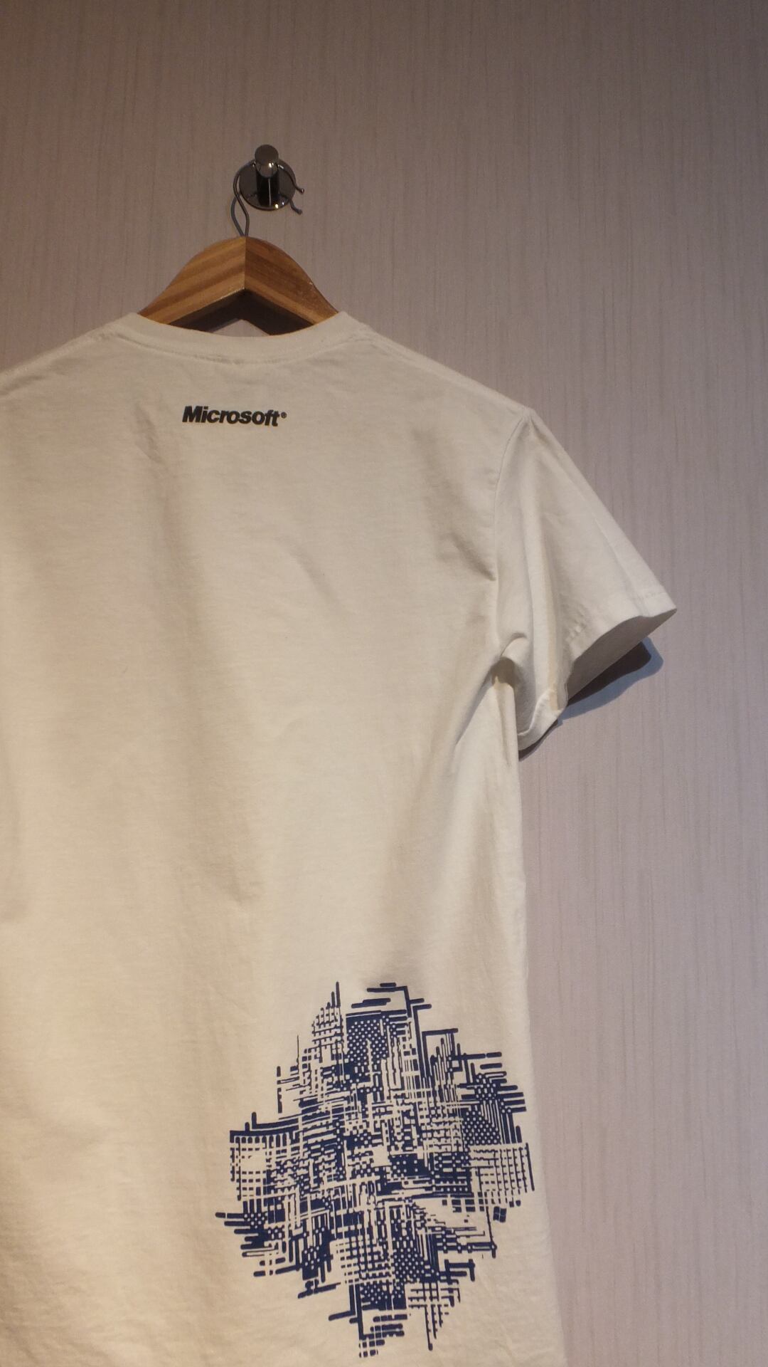 裏面上部に社名、両面にウインドウズのロゴを含むデザインのプリントがなされております。模様の意味や製造時期は不明。