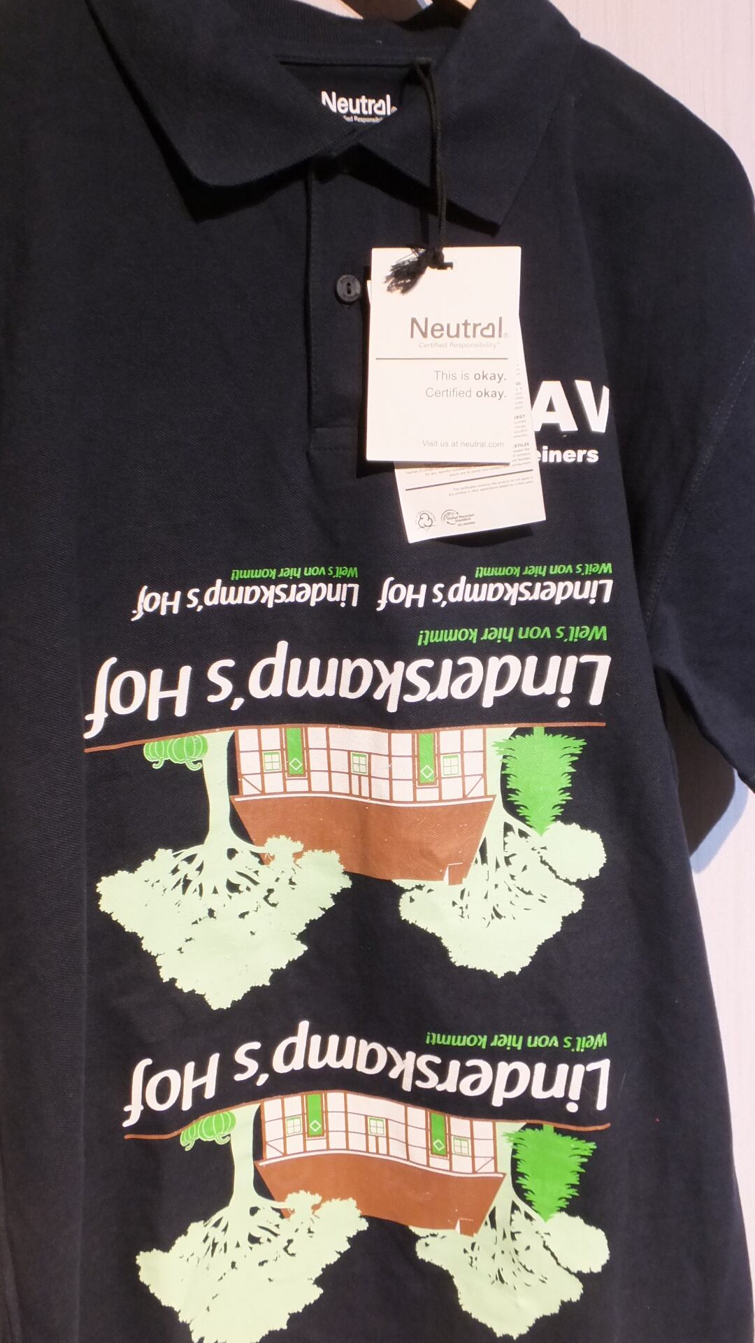 ポロシャツ自体はリバーシブルタイプではありませんが(タグ、刺繍の具合から)内側にも企業のロゴがプリントされております。15枚目以降は内側のプリントです。画像の枚数制限のため、細かいところまで写せませんでしたがご了承ください。