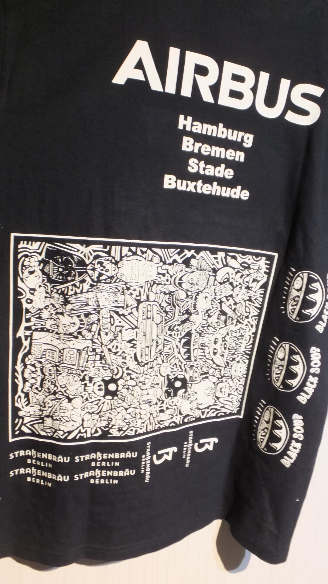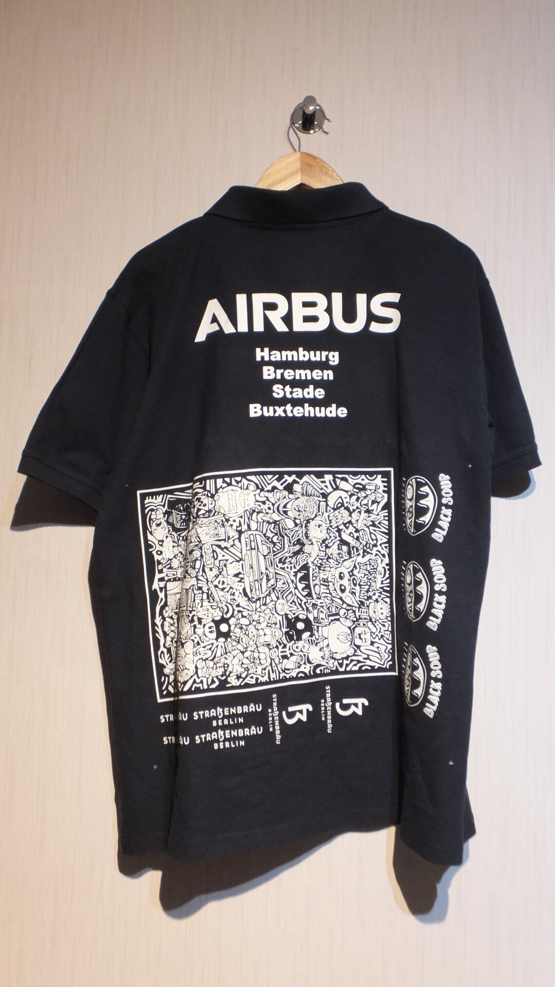 タグ付き未使用新品 AIRBUSなどの企業名プリント入り謎多き半袖ポロシャツ ※リバーシブルではありませんが内側にもプリントが入っております 日本基準概ねメンズXL以上相当 肩幅広め 表示サイズXL 企業物古着