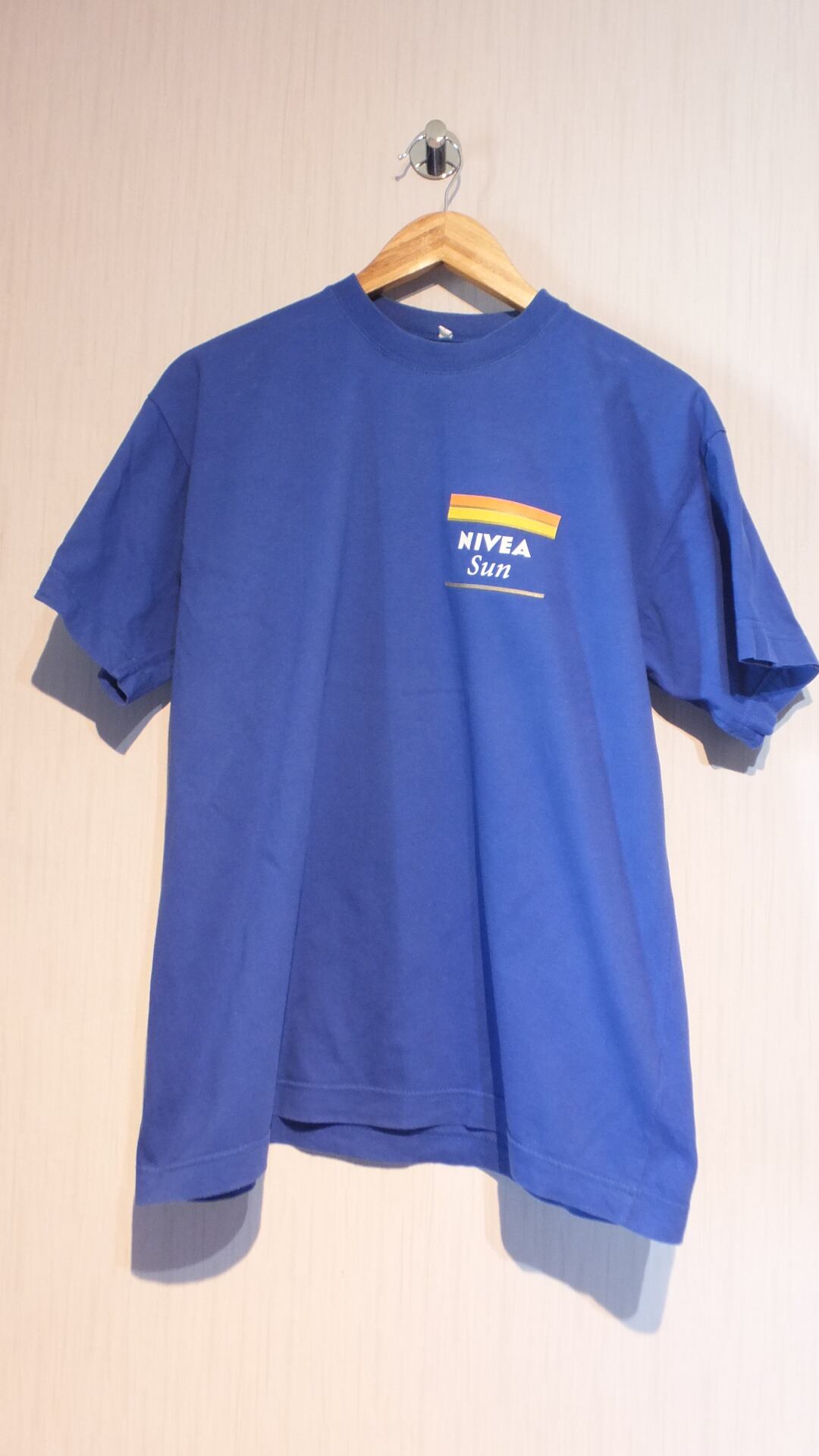 ドイツのバイヤスドルフ社所有、日本でもおなじみのクリームブランド ニベア NIVEA の日焼け止め、NIVEA Sun ニベア サンのプリント入りTシャツです。